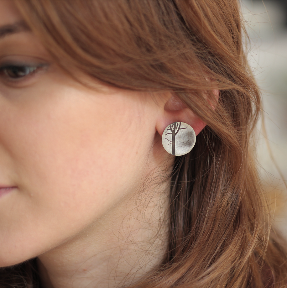 *Ağaç Desenli Daire Küpe 925 ayar gümüştür.