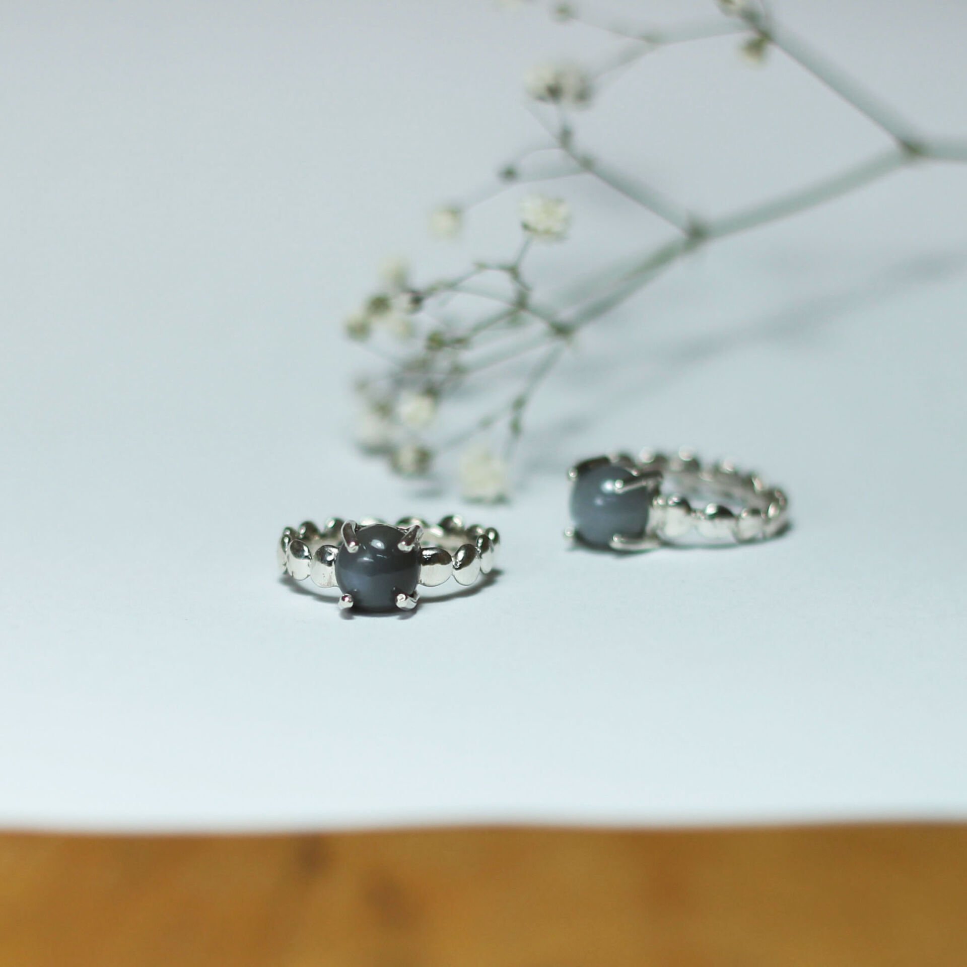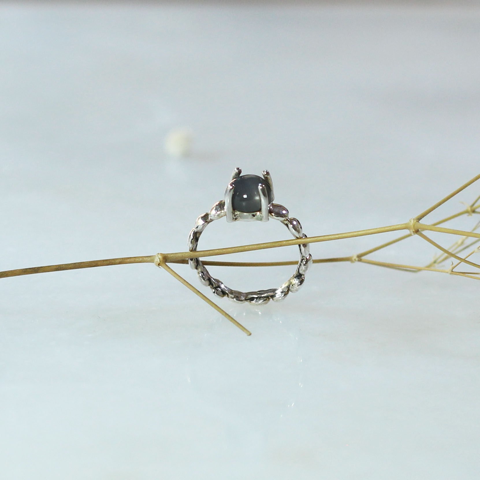Ay Taşlı Bubble Yüzük Gümüş