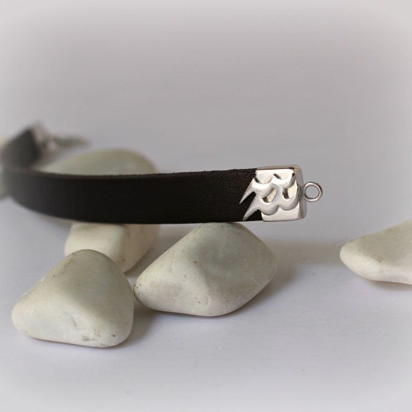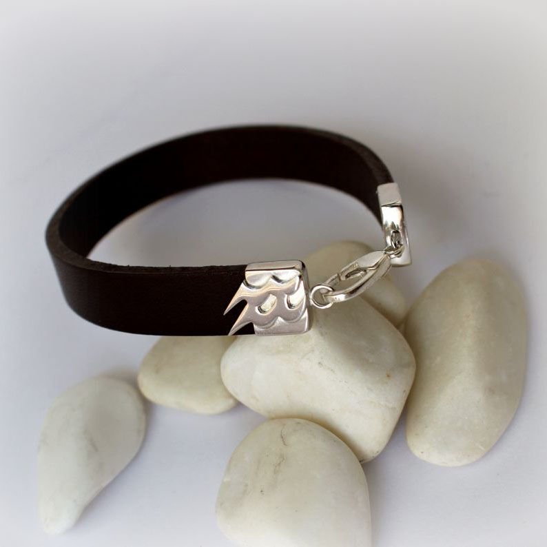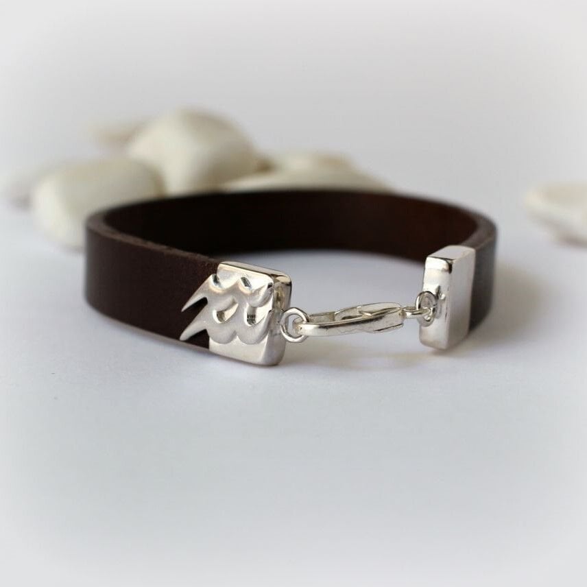 Gümüş Burç Simgeli Deri Kayışlı Bileklik