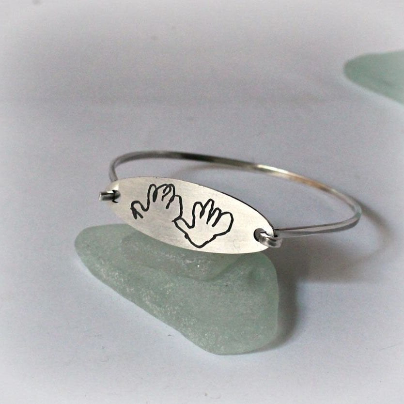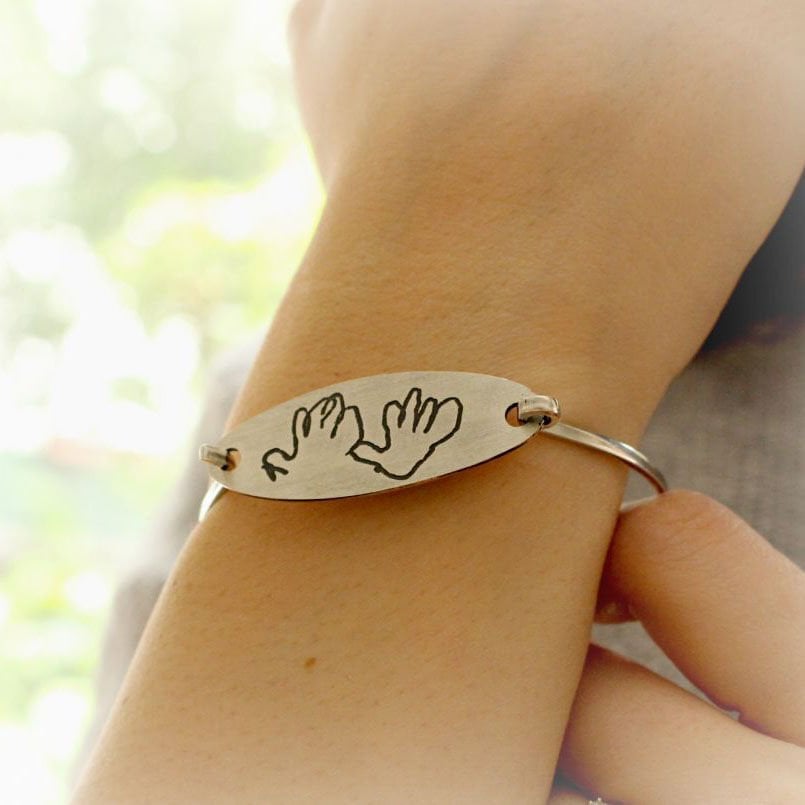 Çocuk Çizgisiyle Gümüş Anne Bilekliği