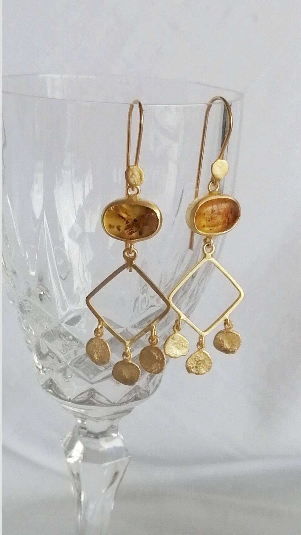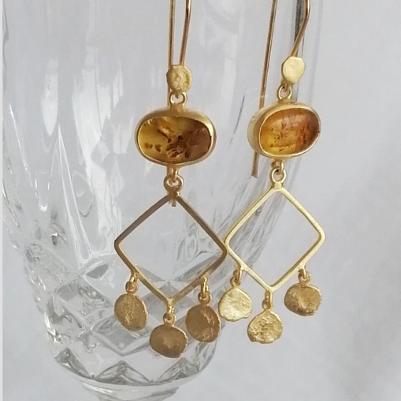 Kehribar Taşlı Tılsım Küpe - Gümüş ve El Yapımı
