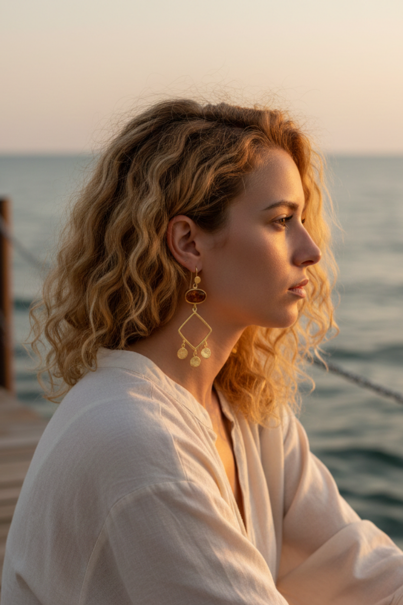 L'ea Atölye'nin sade ama etkili dilini yansıtan bu özel Kehribar Taşlı Tılsım Küpe, el yapımı mücevher tutkunları için benzersiz bir seçenek. Doğadan gelen bu tılsımı kulağınızda taşırken, kehribarın o iç ısıtan rengiyle gününüzü aydınlatın.