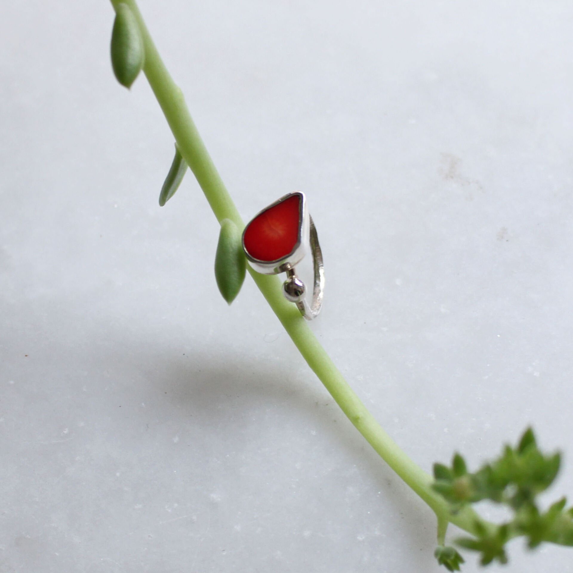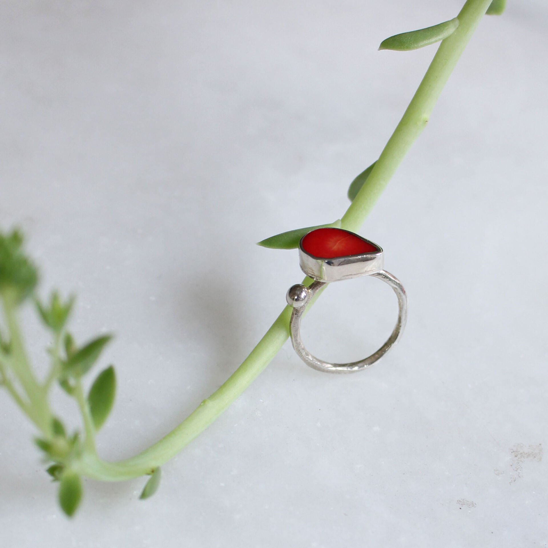 Mercan Taşlı Damla Gümüş Yüzük Bakım: