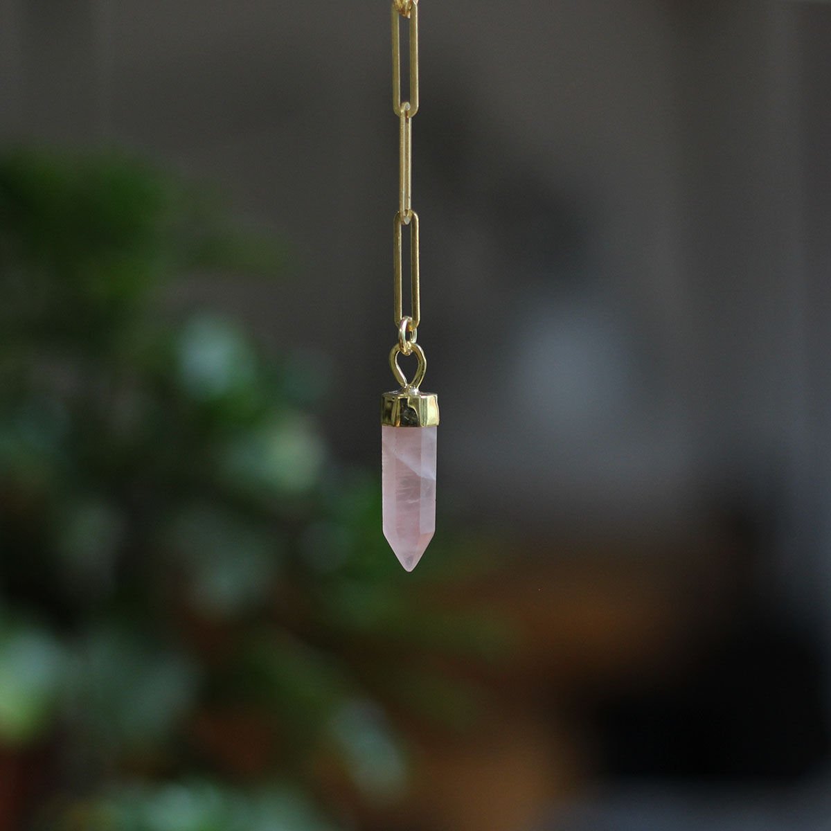 *Kuvars Kristali Sütun Kolye, 925 ayar gümüş üzeri altın kaplamadır.