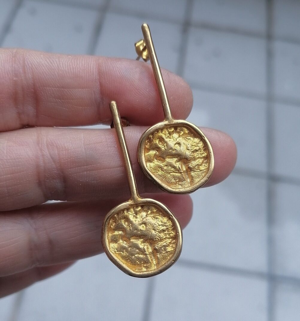 Yeryüzü Gümüş Uzun Küpe Altın Kaplama