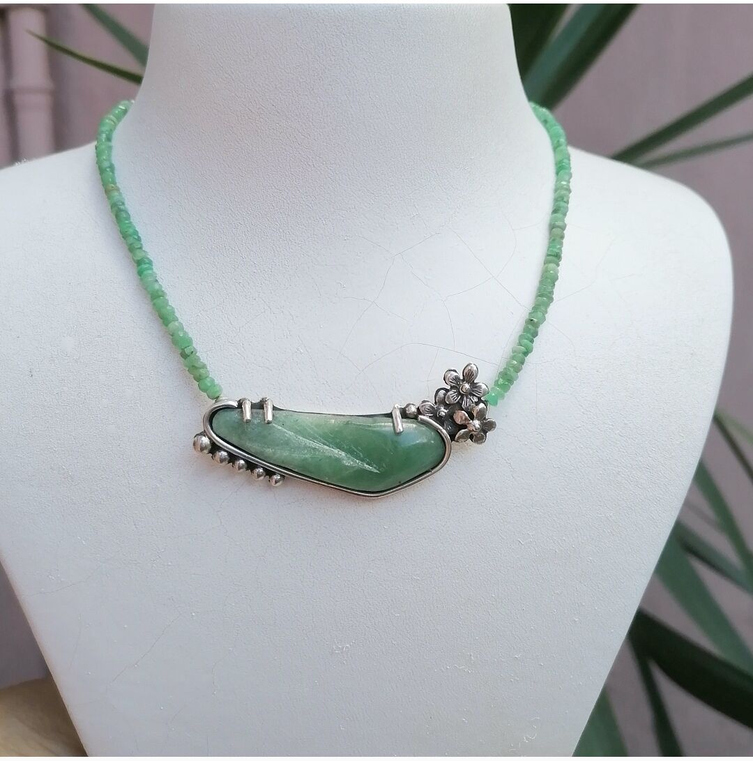 Zümrüt ve Aventurine Taşlı Gümüş Bahar Kolye