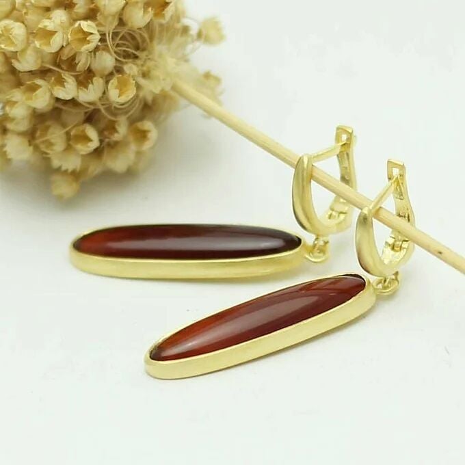 Akik Taşlı Gümüş Küpe - Altın Kaplama Bakımı: