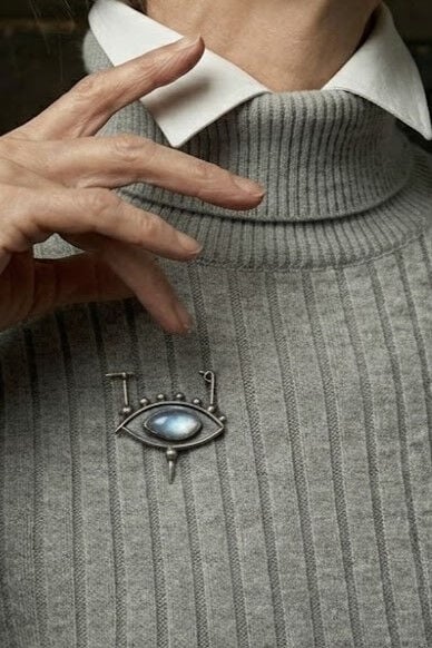 L'ea Atölye’nin sembolik anlatımıyla zanaatkar işçiliği bir araya getiren çok özel bir parçadır. Tasarımın merkezinde yer alan ay taşının puslu ışığı, Aytaşı Göz Broş modeline mistik bir derinlik ve koruyucu bir anlam katıyor. 925 ayar gümüşün antik dokusuyla birleşen bu Aytaşı Göz Broş, sadece bir aksesuar değil, yakada taşınan zamansız bir sanat eseridir.
