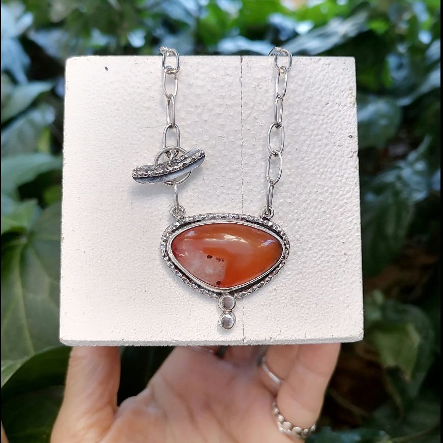 Bal Akik Taşlı Gümüş Üçgen Kolye
