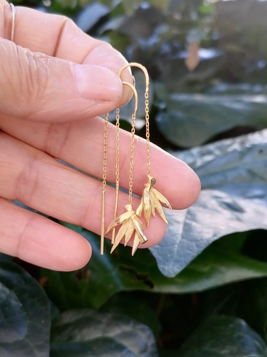 Gümüş Bambu Zincirli Küpe Altın kaplama Bakım: