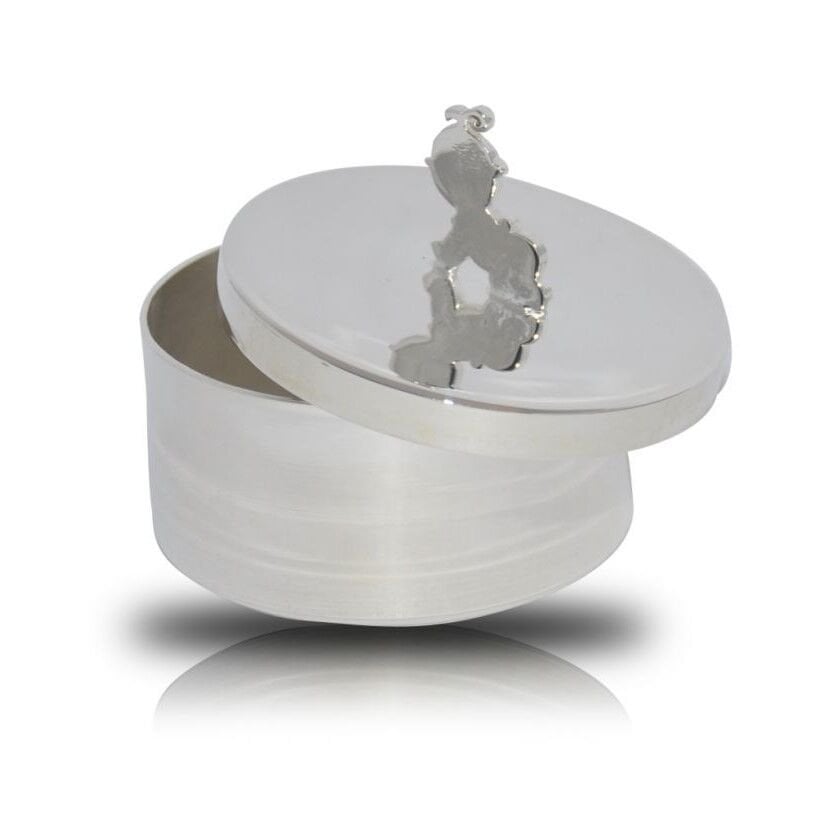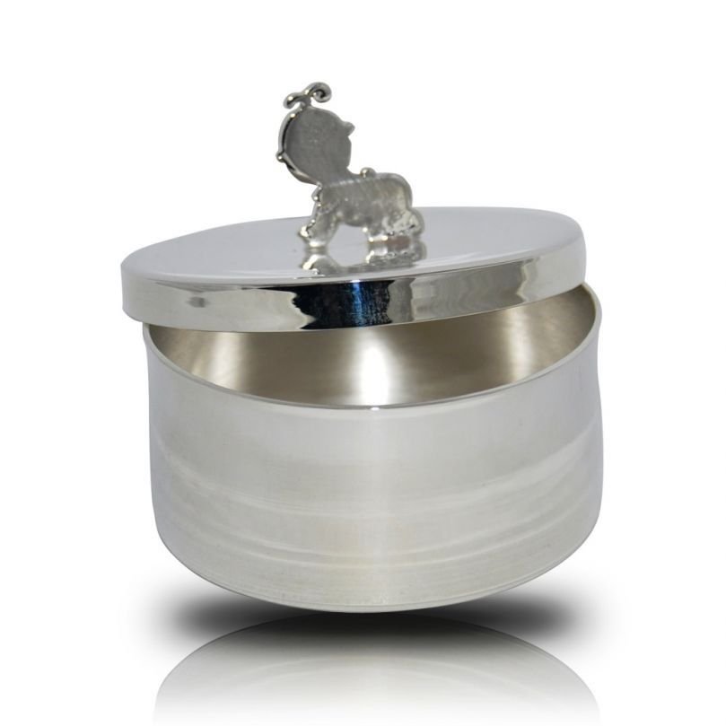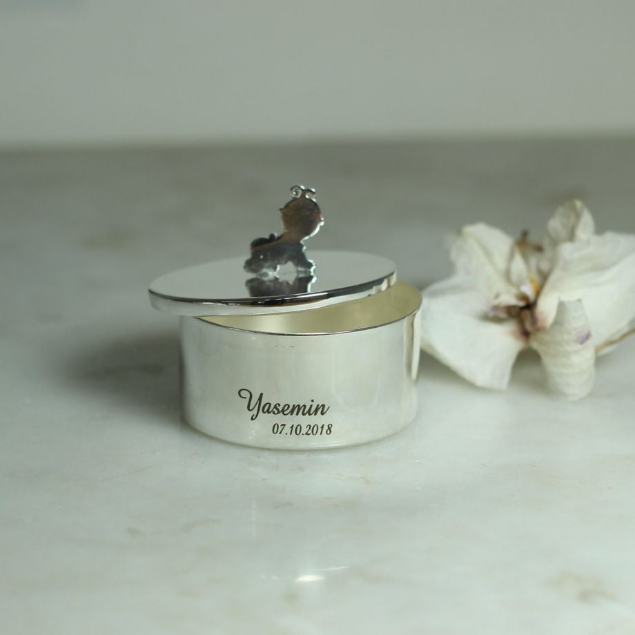 Bebeğinizin ilk buklesi veya ilk dişini güvenle muhafaza edebilmeniz için hazırlanmış 925 ayar gümüş kaplama kutuyu dilerseniz üzerine isim ve tarih yazdırarak sevdiklerinize de çok özel bir hediye olarak sunabilirsiniz.