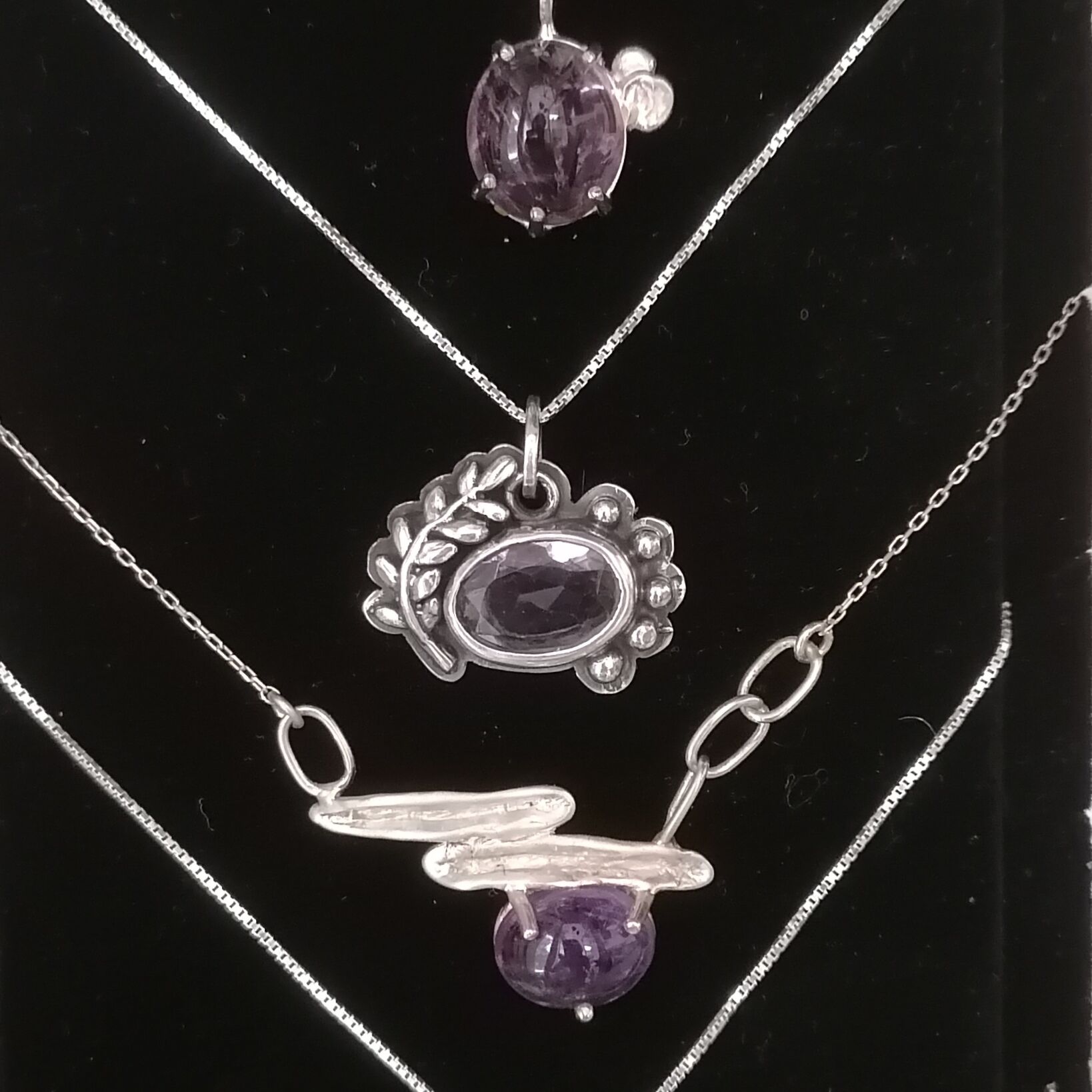 Gümüş Beş Benek Ametist Kolye l'ea141 Gümüş Beş Benek Ametist Kolye