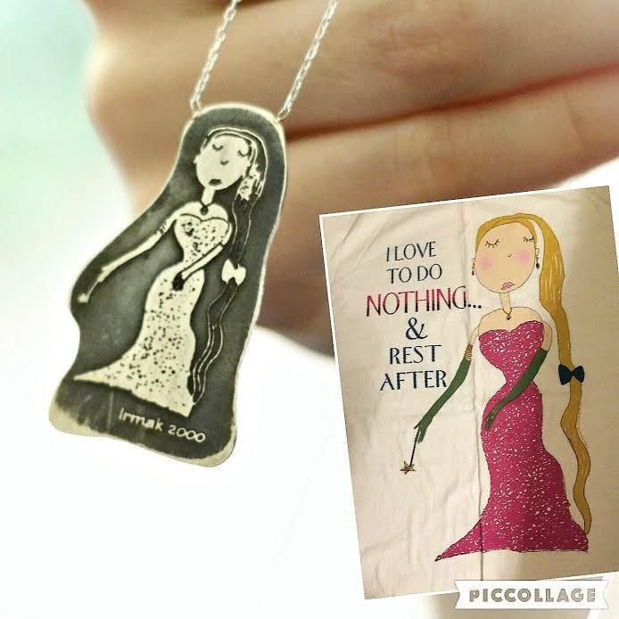 Çocuk Çizgisiyle Gümüş Anne Kolyesi