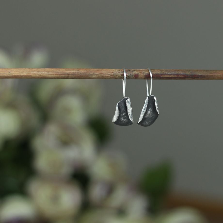 Curl Oksitli 925 Ayar Gümüş Küpe, elde şekillendirilmiş, zamansız bir tasarımdır.