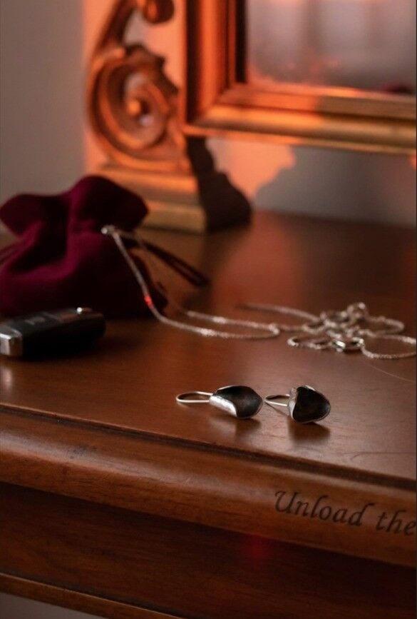 Bu oksitli gümüş küpe, günü geride bırakıp kendi alanına döndüğün anlara eşlik eder.