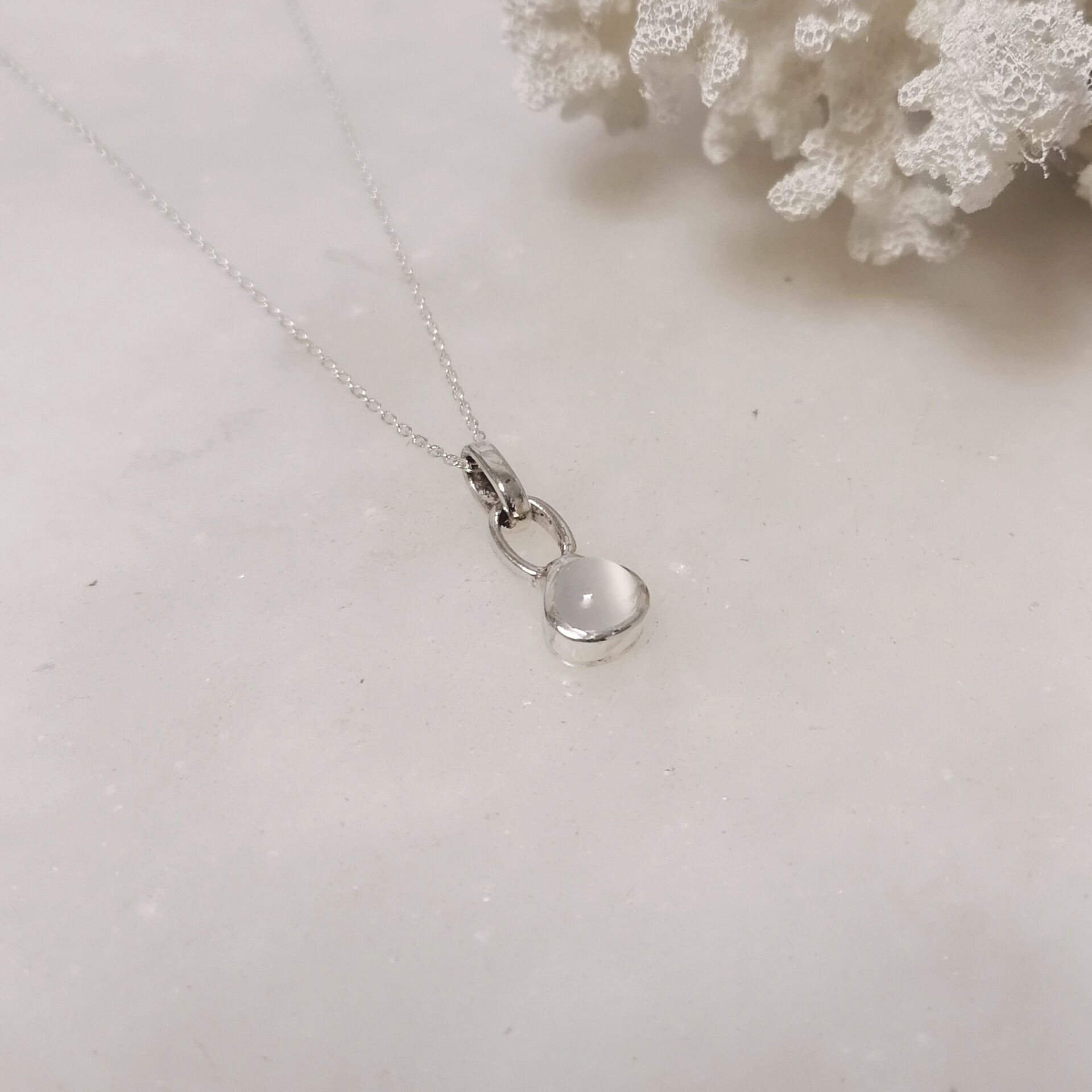 Damla Kesimli Ay Taşı Gümüş Kolye