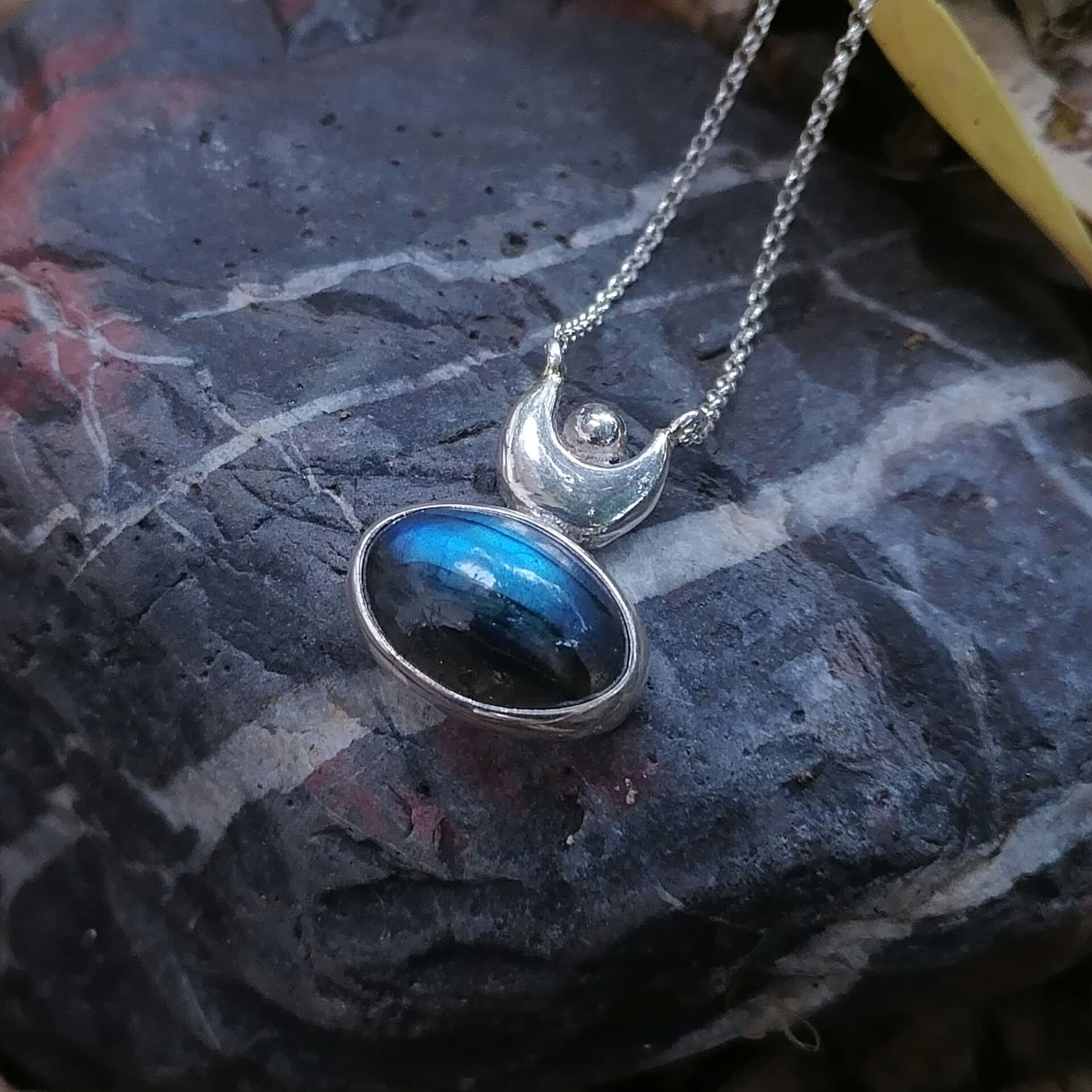 Elips Labradorite Taşlı Gümüş Kolye l'ea52 Elips Labradorite Taşlı Gümüş Kolye