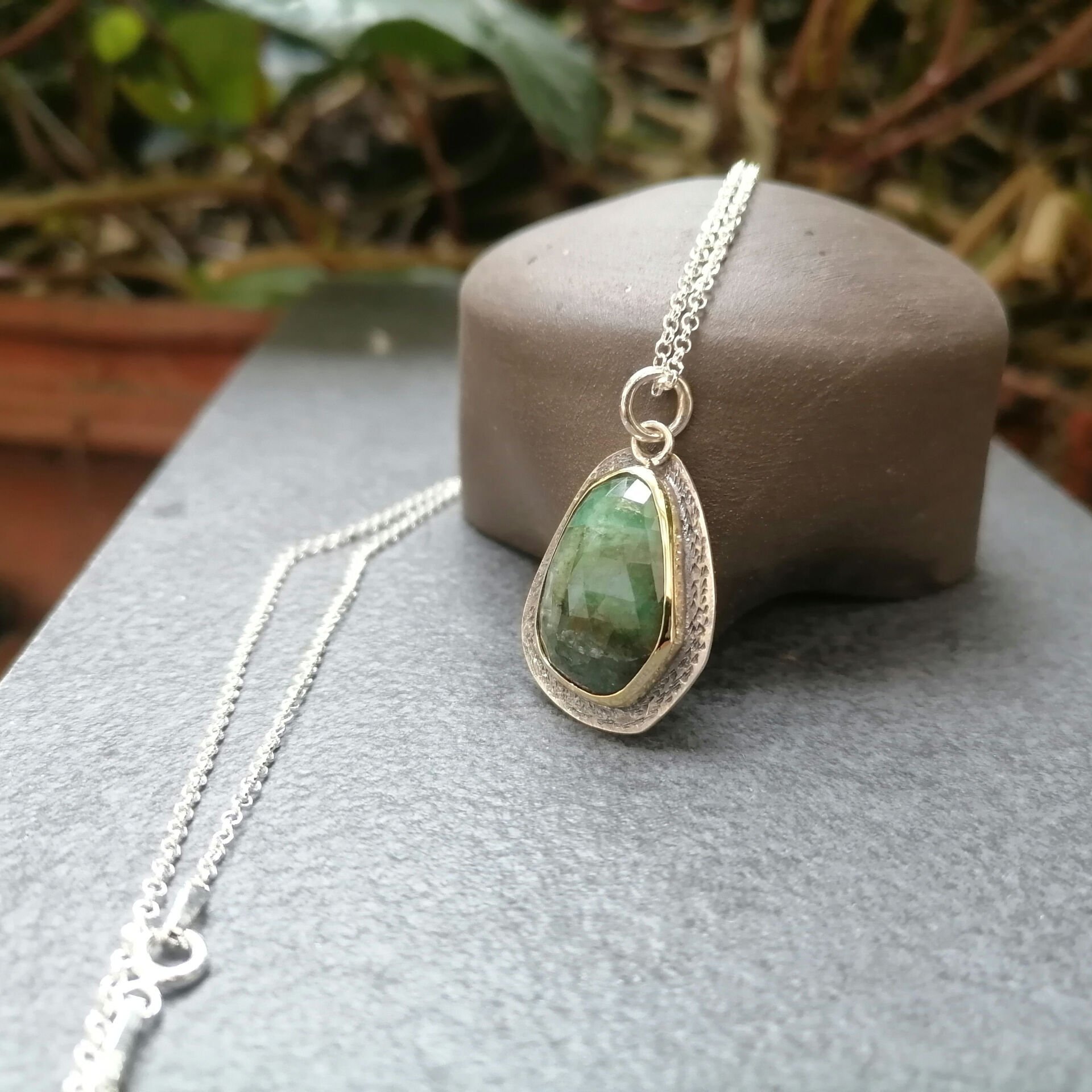 Fasetli Kök Zümrüt Gümüş Kolye Altın Sıvama