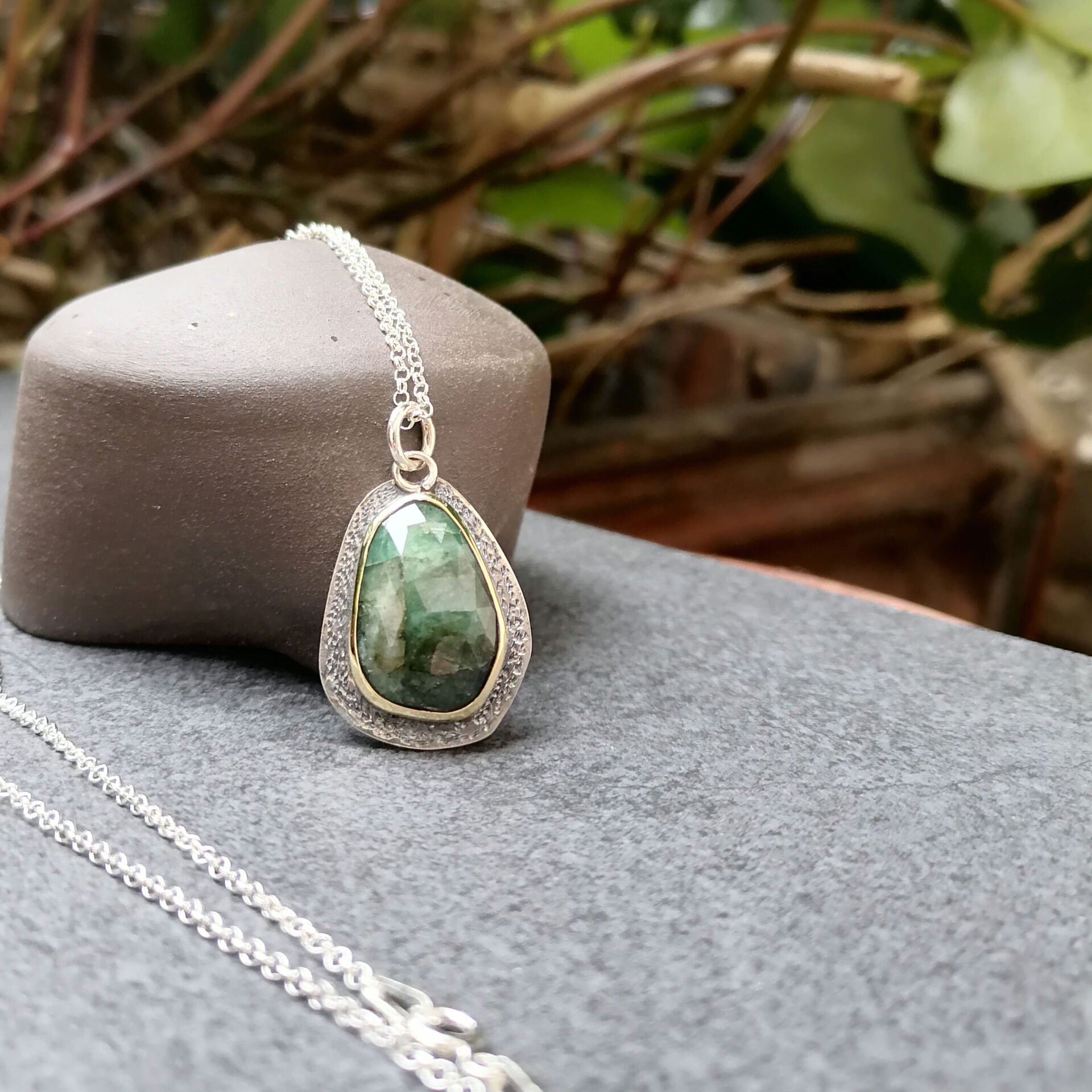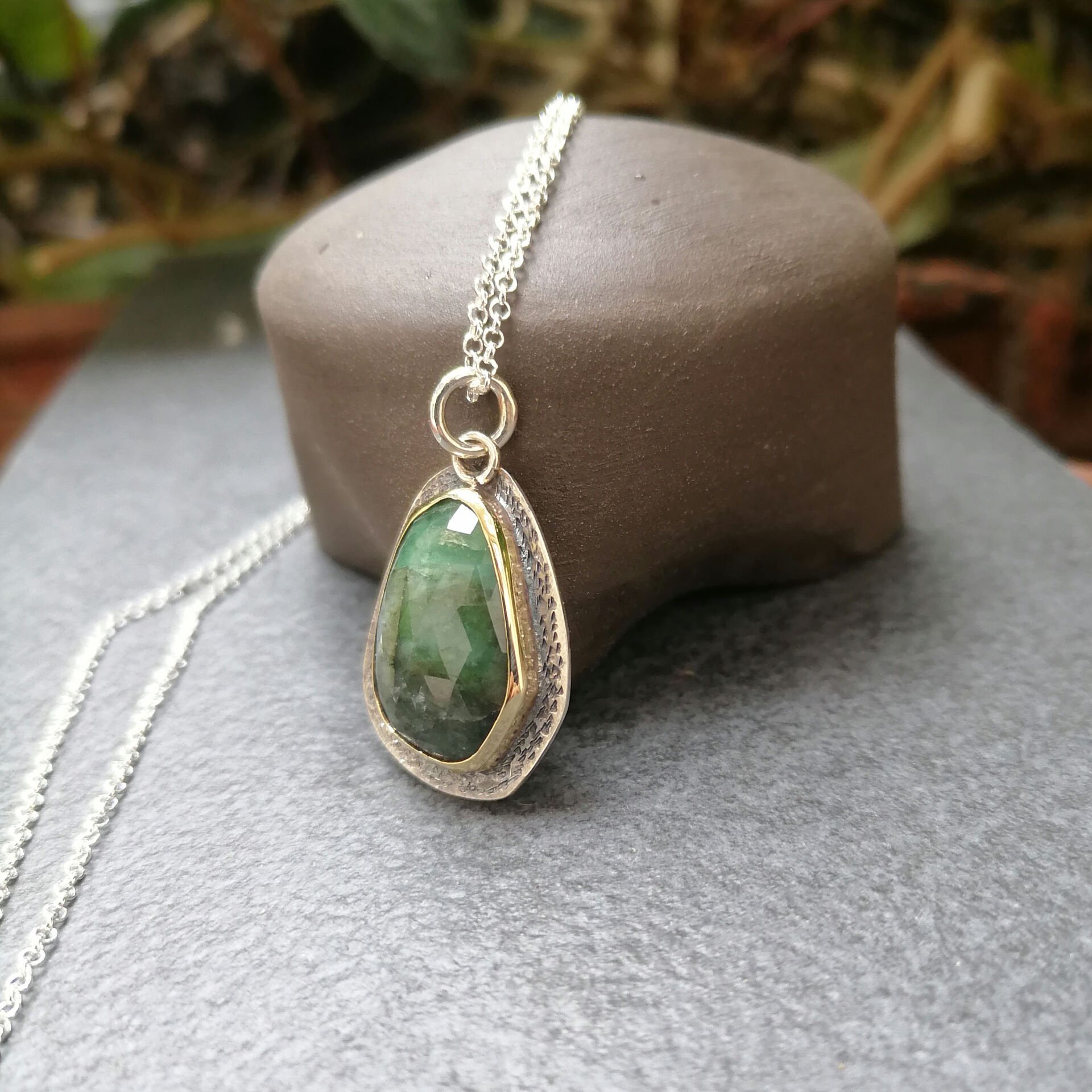 Fasetli Kök Zümrüt Gümüş Kolye Altın Sıvama Bakım:
