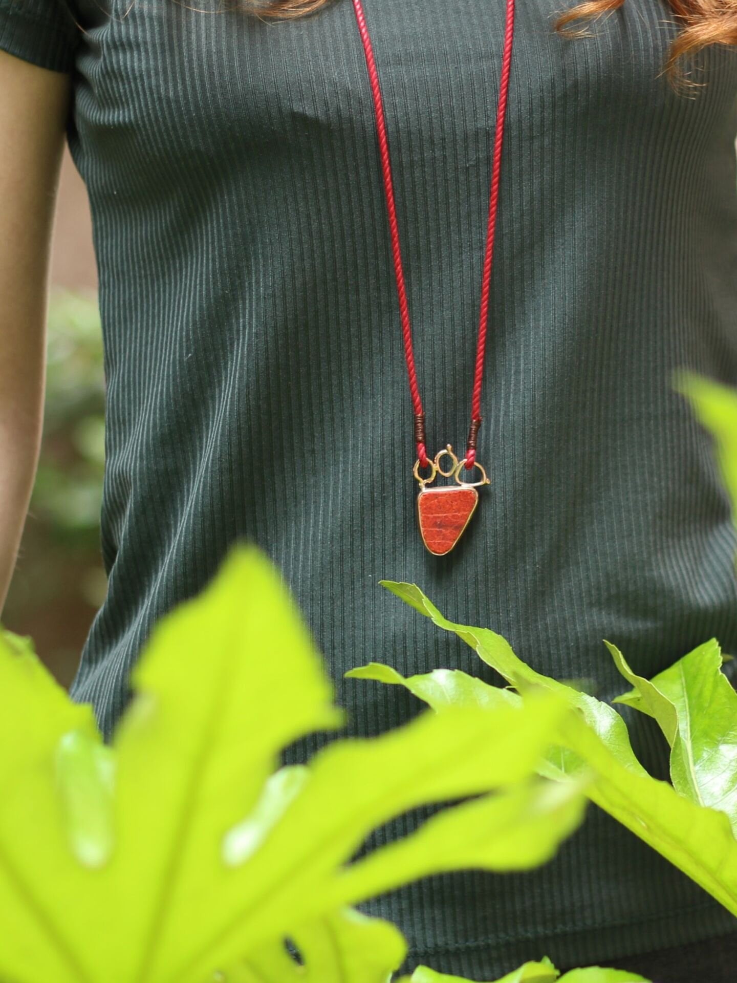 Kırmızı Doğal Taşlı Bronz Kolye | El Yapımı Tasarım