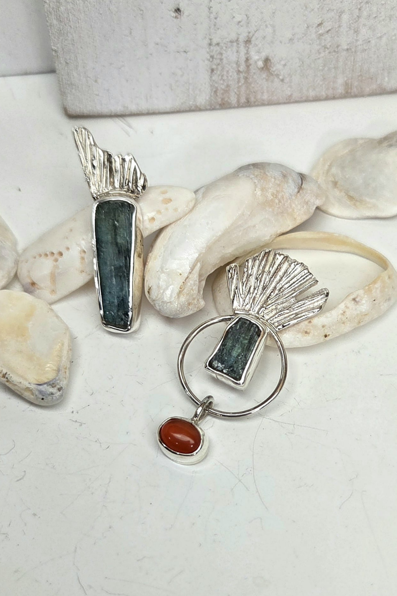 Kyanit ve Carnelian Yelpaze Gümüş Küpe