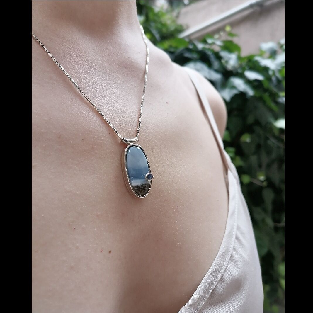 Manzara Akik ve Lapis Taşlı Gümüş Ada Kolye l'ea73 Manzara Akik ve Lapis Taşlı Gümüş Ada Kolye