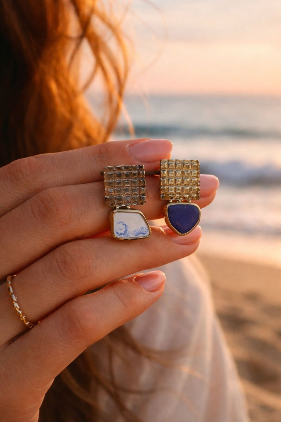 Doğanın bize sunduğu mirası, sanatla yeniden yaşatıyoruz. L'ea Gümüş Tasarım - Recycle Koleksiyonu’nun en özel parçalarından biri olan bu küpeler, deniz kıyısından özenle toplanan ve yıllarca dalgalarla pürüzsüzleşmiş antik seramik parçalarından (deniz taşlarından) üretildi.