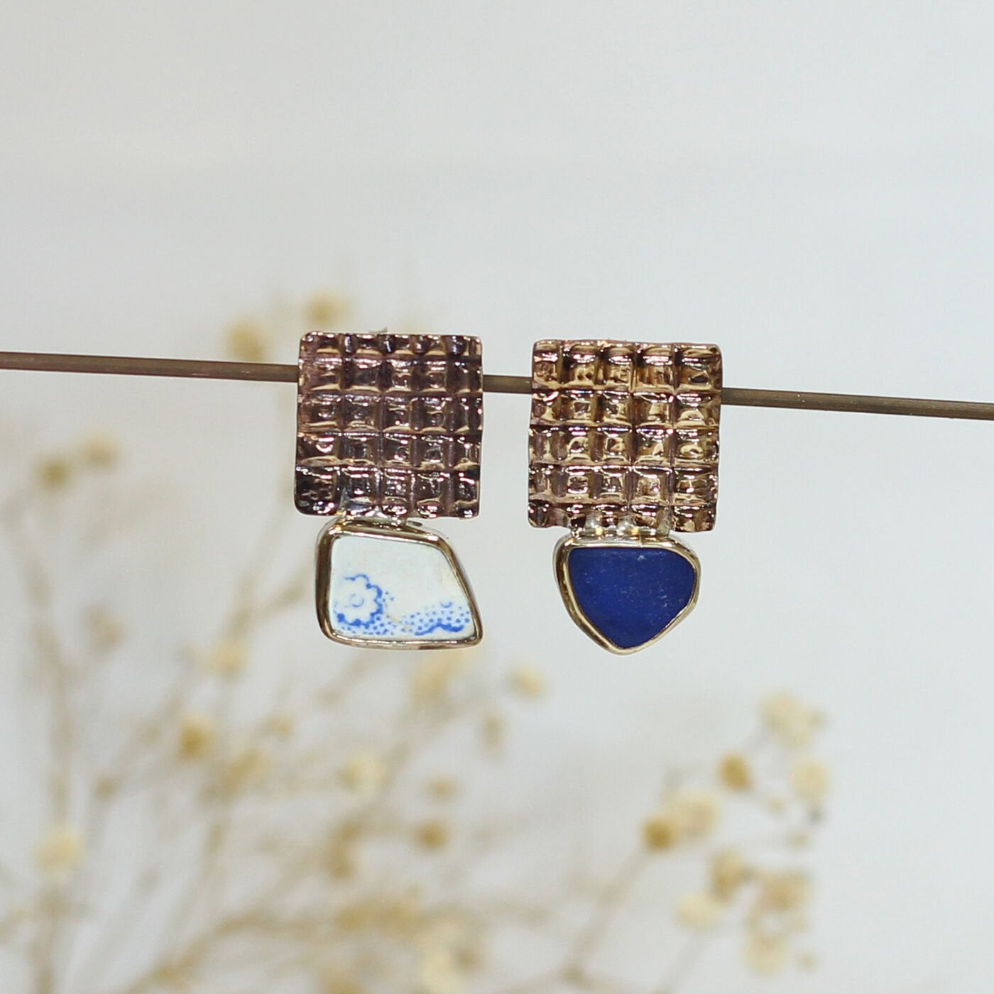Recycle Serisi: El Yapımı Bronz ve Deniz Taşı Küpe