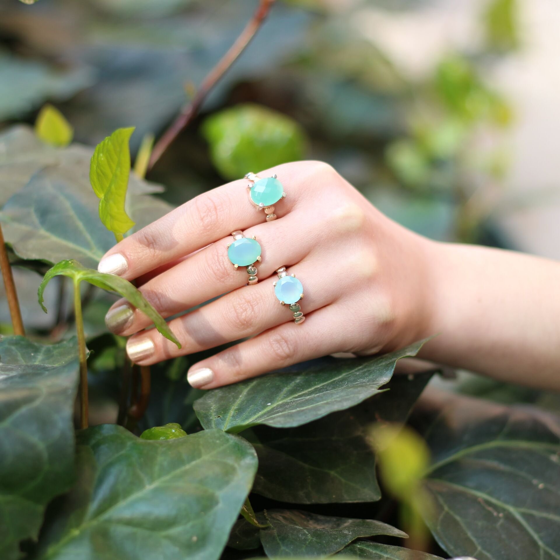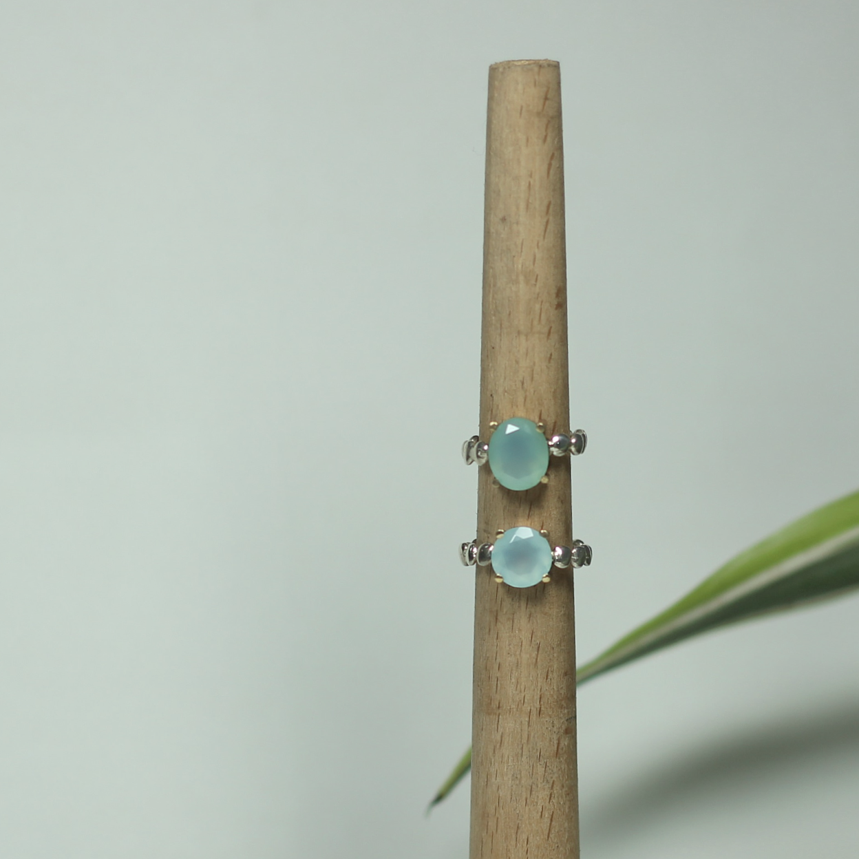*925 ayar gümüş ve kalsedon taşı birlikte kullanılmıştır.