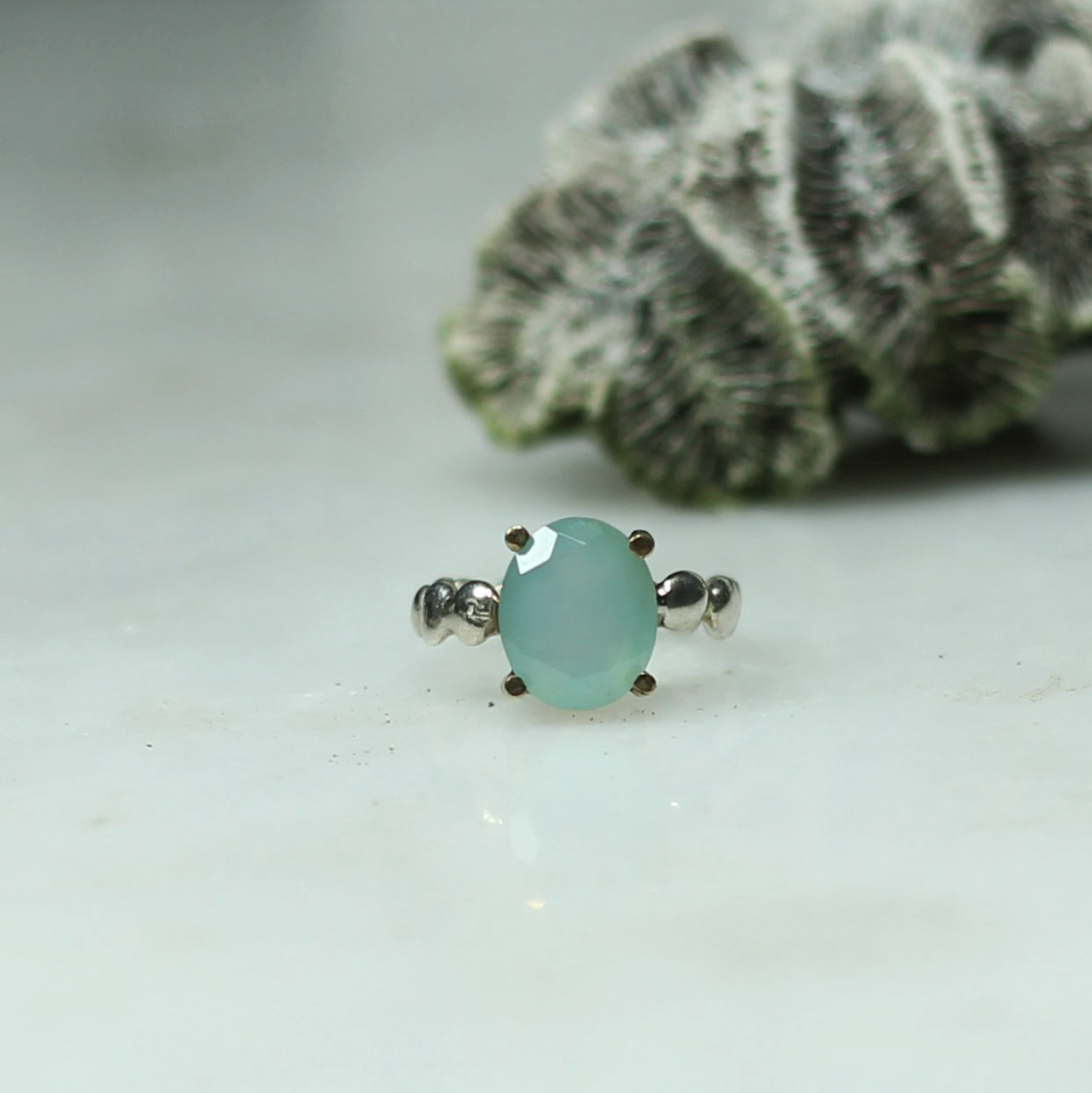 Oval Kalsedon Gümüş Yüzük