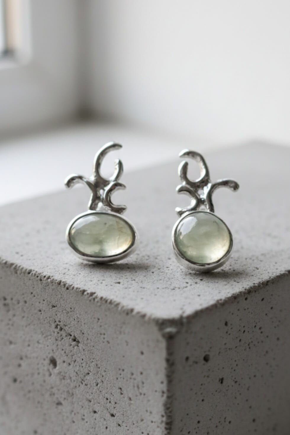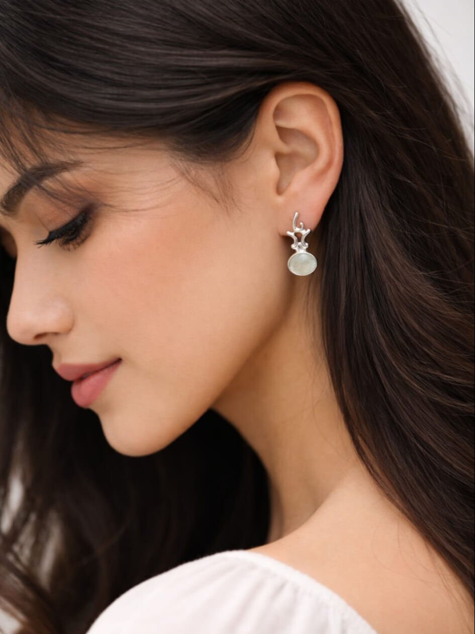 Prehnite Taşlı Pimli Gümüş Küpe
