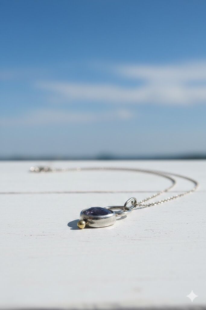L'ea Gümüş Tasarım’ın mistik dokunuşlarıyla hayat bulan bu özel parça, büyüleyici mor-mavi ışıltısını, modern ve organik formlu gümüş işçiliğiyle birleştiriyor.