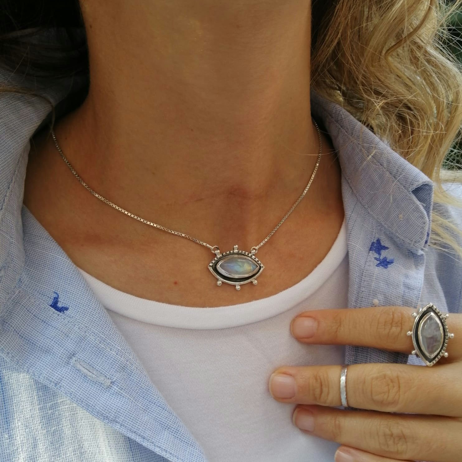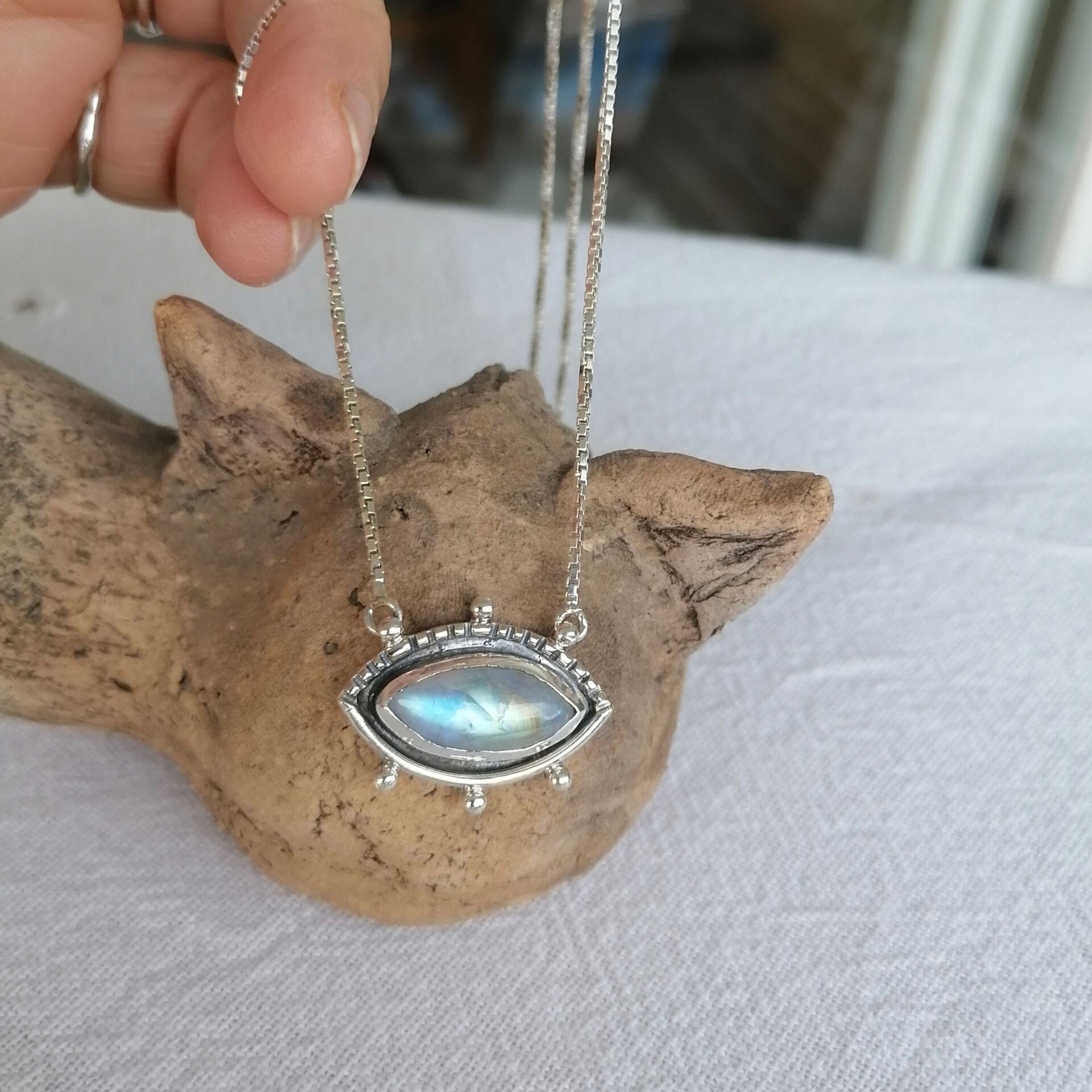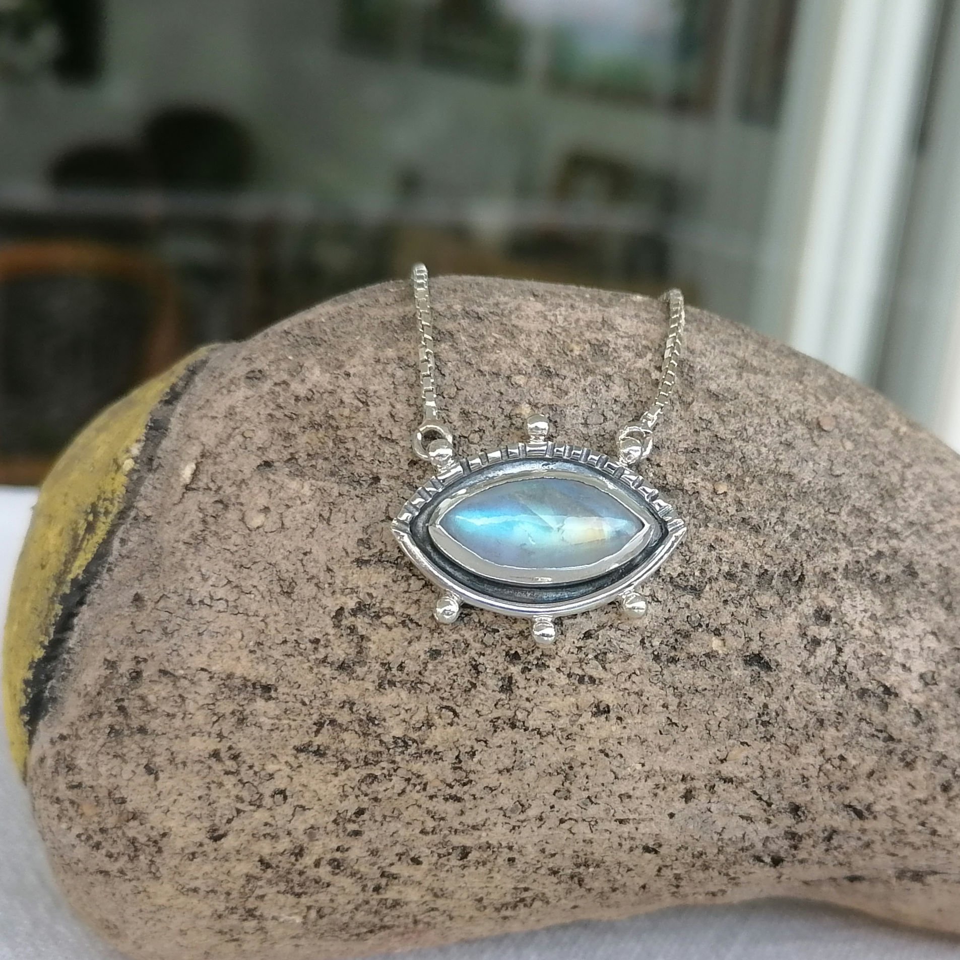 *Ay Taşı Göz Kolye, 925 ayar gümüştür.