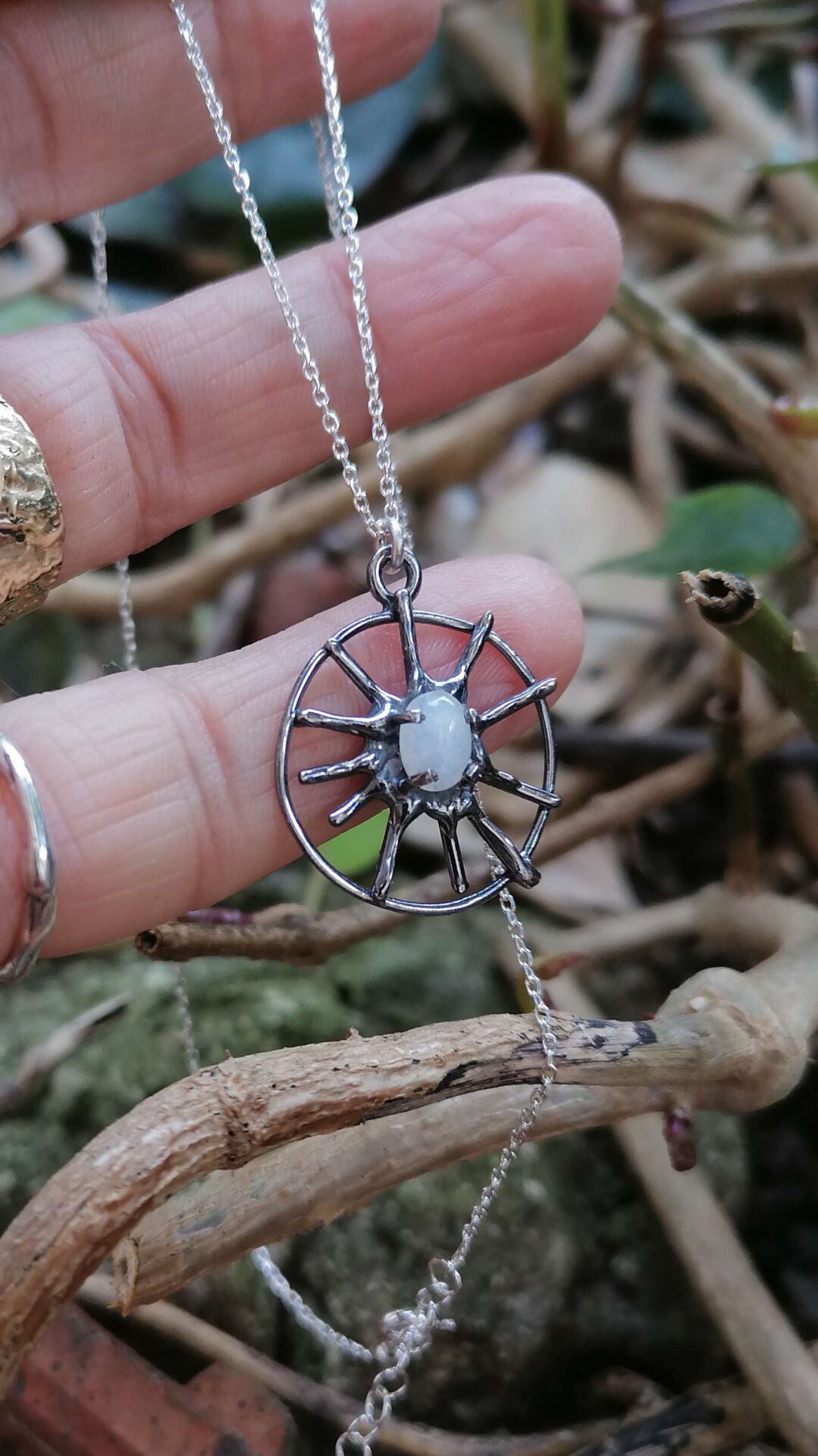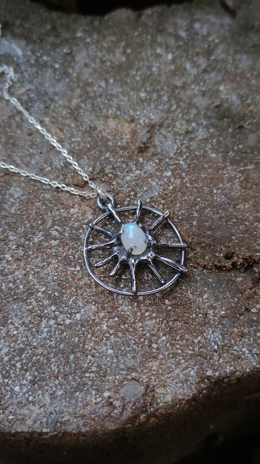 Ürün Hikayesi ve Tasarımı: Güneşin yakıcı enerjisinden ilham alan Solarius serisi, Night Solarius Gümüş Kolye ile gecenin gizemli örtüsüne bürünüyor. Geleneksel güneş tekerleği (Ferris) formunun, tamamen el işçiliği ile yeniden yorumlandığı bu özel tasarım; merkezindeki Ay Taşı (Moonstone) ile ruhunu buluyor.
