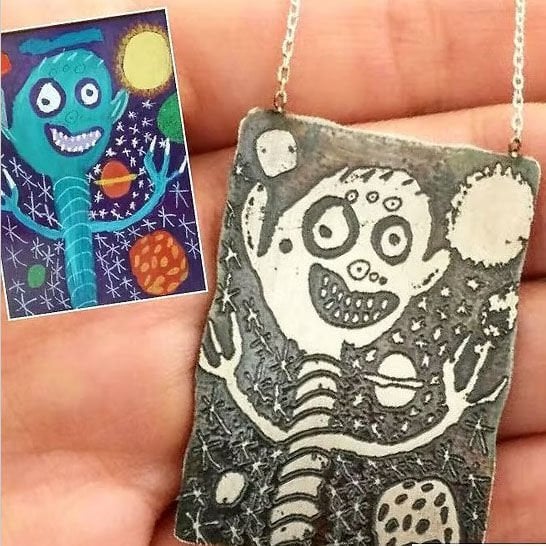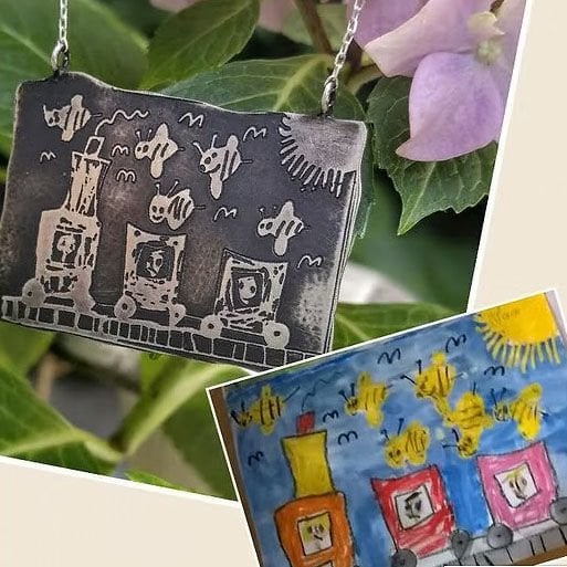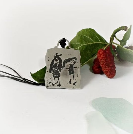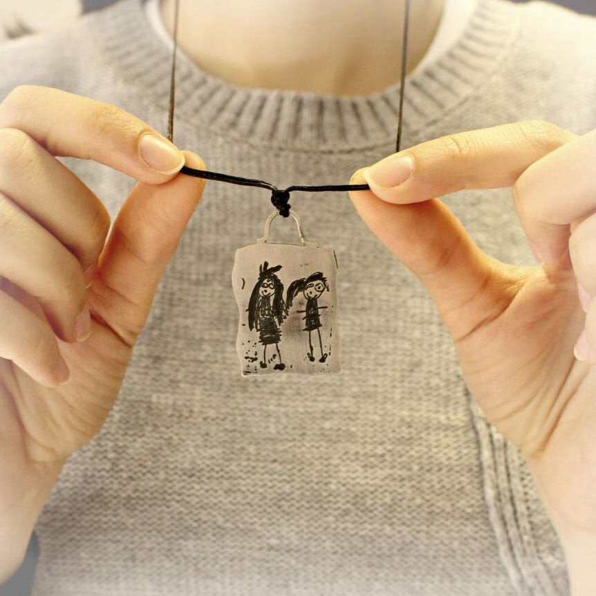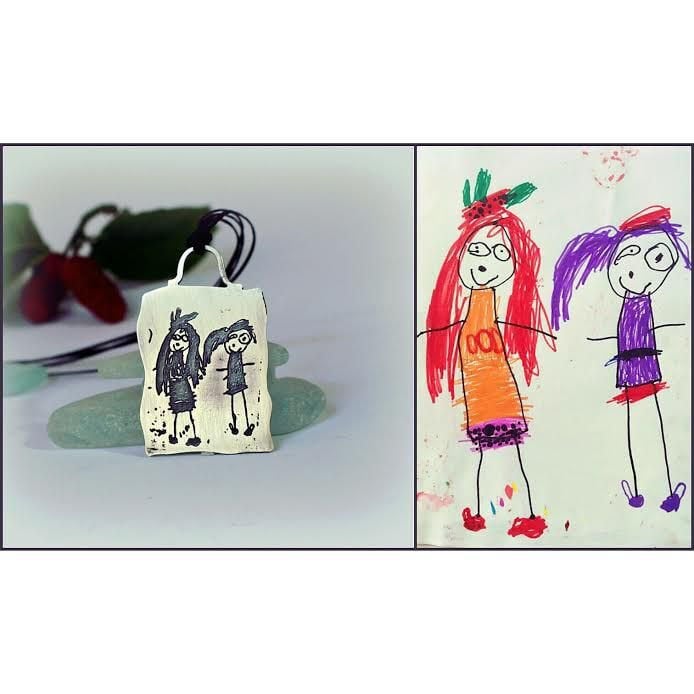 Çocuk Çizgisiyle Gümüş Anne Kolyesi