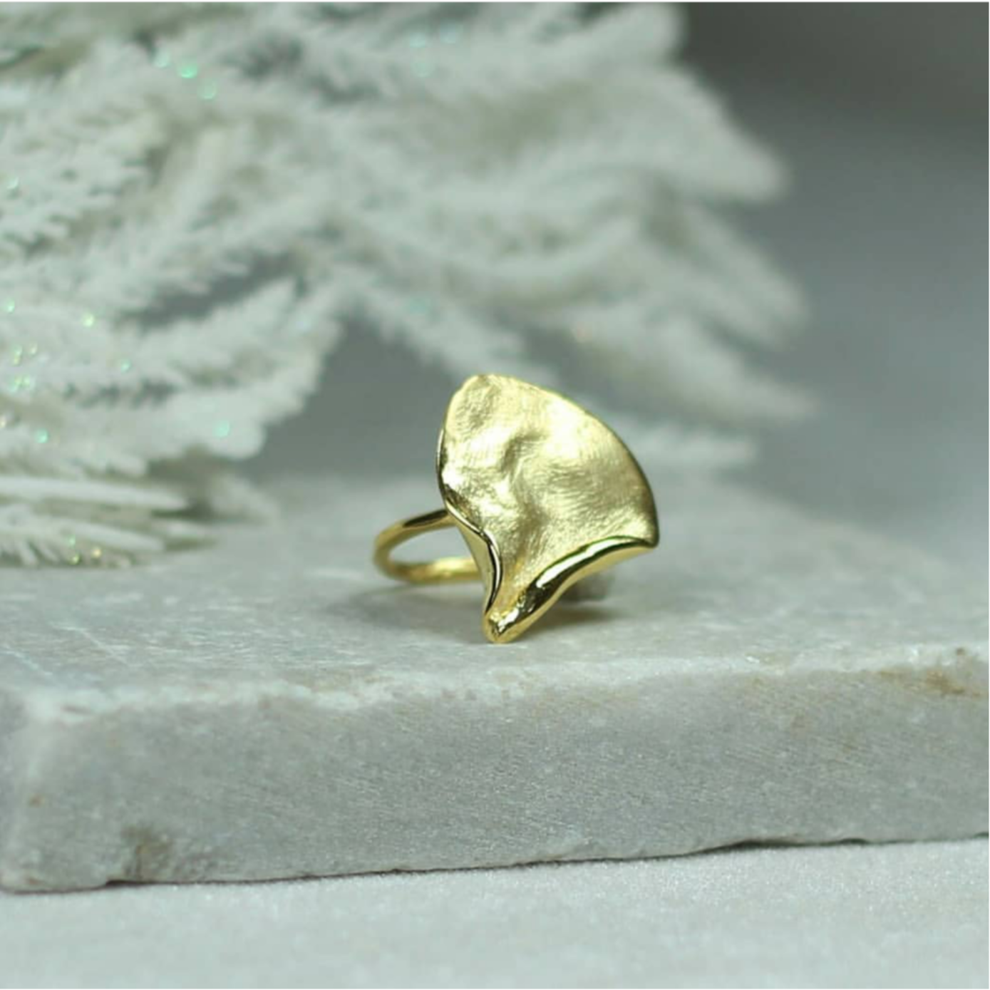925 ayar gümüş üzerine yapılan yüksek kaliteli altın kaplama, yüzüğün dalgalı yüzeyinde büyüleyici ışık oyunları yaratıyor. Doğadaki organik formlardan esinlenen Curl Yüzük, hem tek başına güçlü bir ifade sunuyor hem de diğer minimal parçalarınızla kusursuz bir uyum yakalıyor.