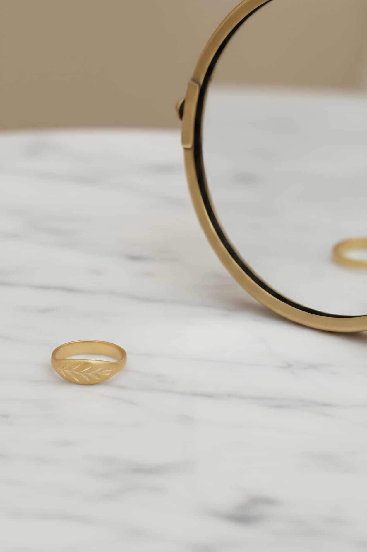 Tasarım Estetiği: Yüzeyinde yer alan defne yaprağı figürü, Defne Dalı Yüzük modeline zamansız bir karakter kazandırır.