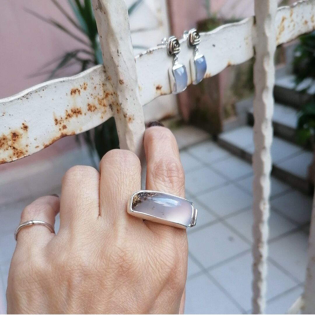 Dörtgen Kalsedon Gümüş Yüzük