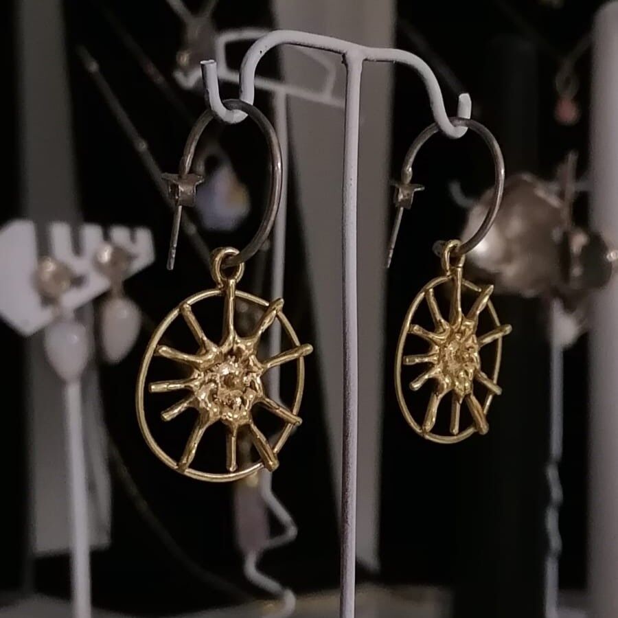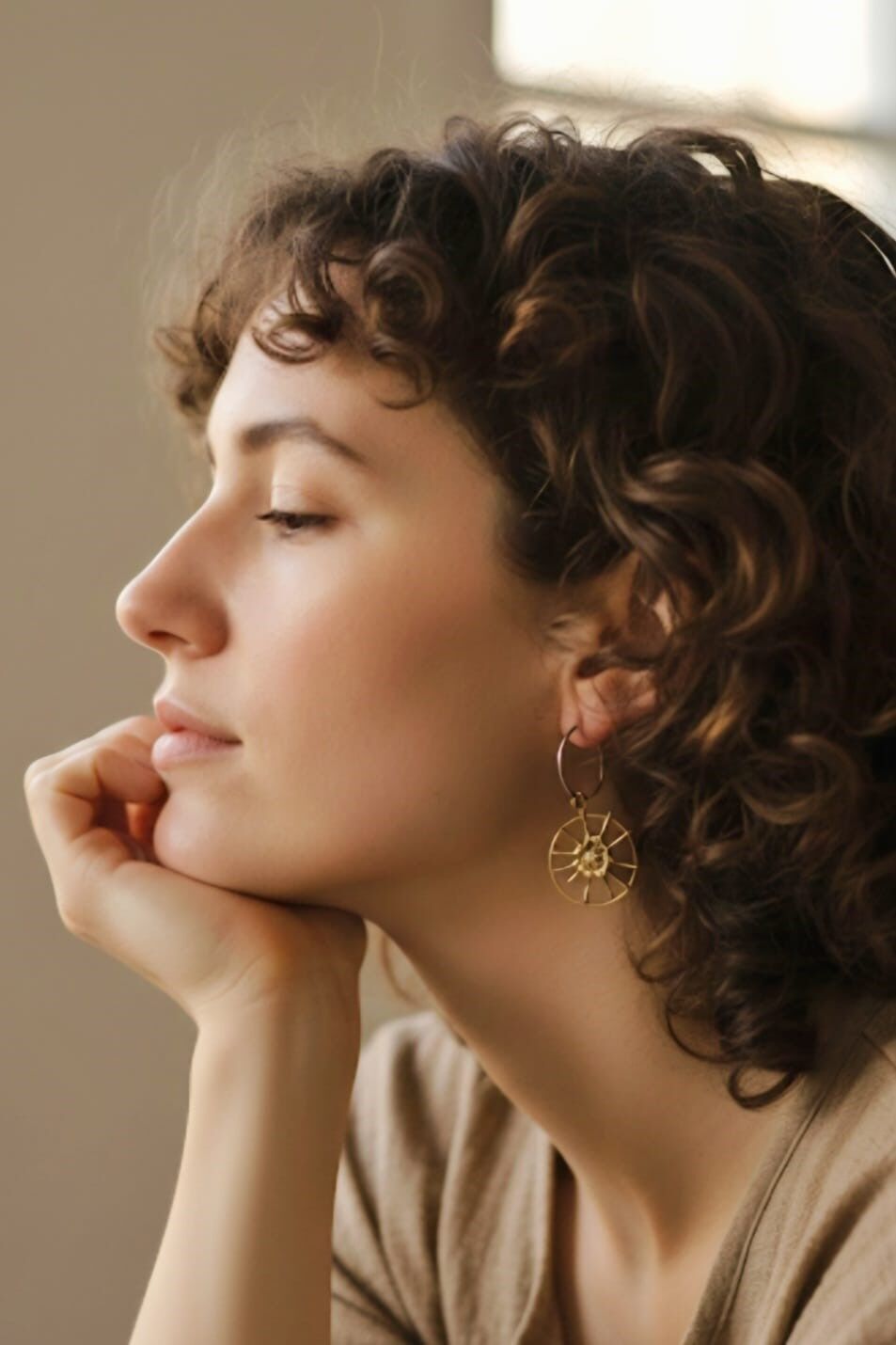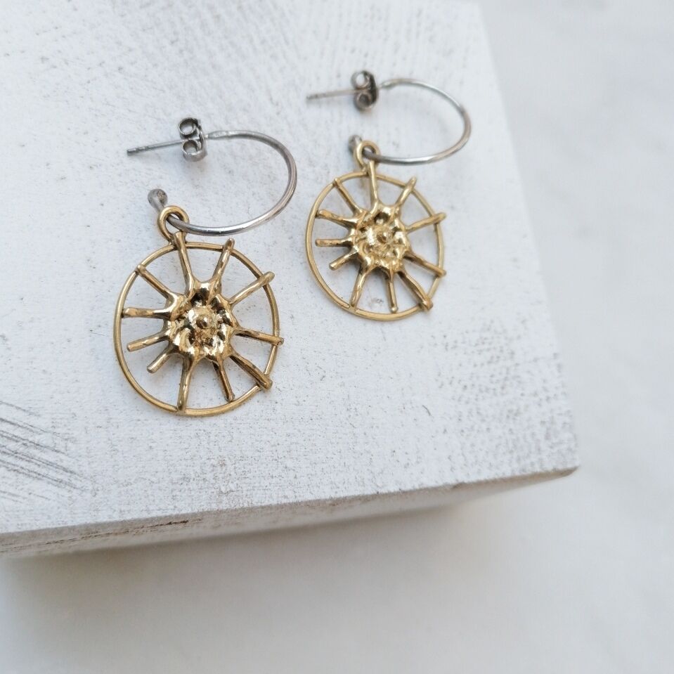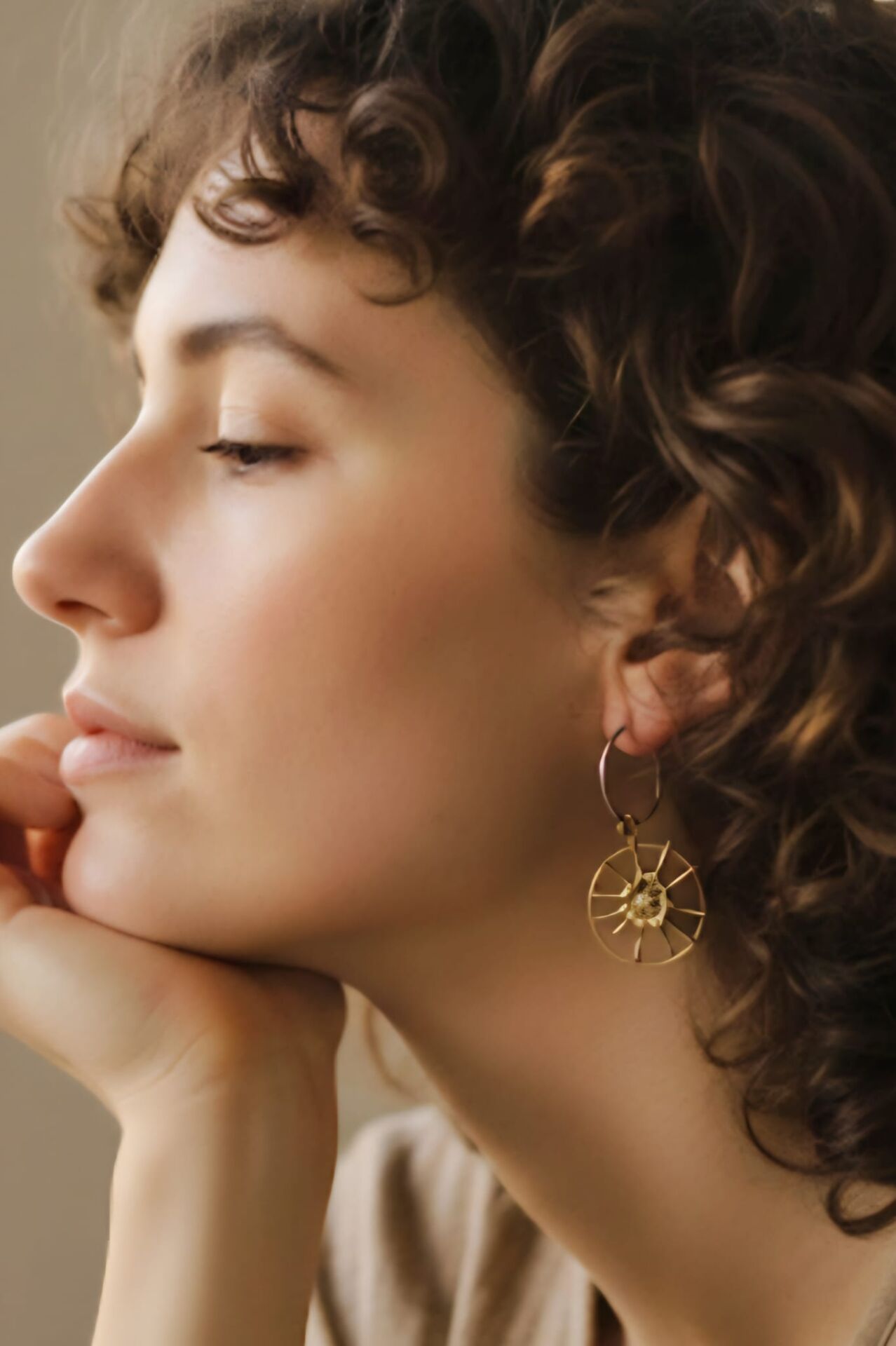 Neden Solarius - El Yapımı Bronz Güneş Figürlü Gümüş Halka Küpe?