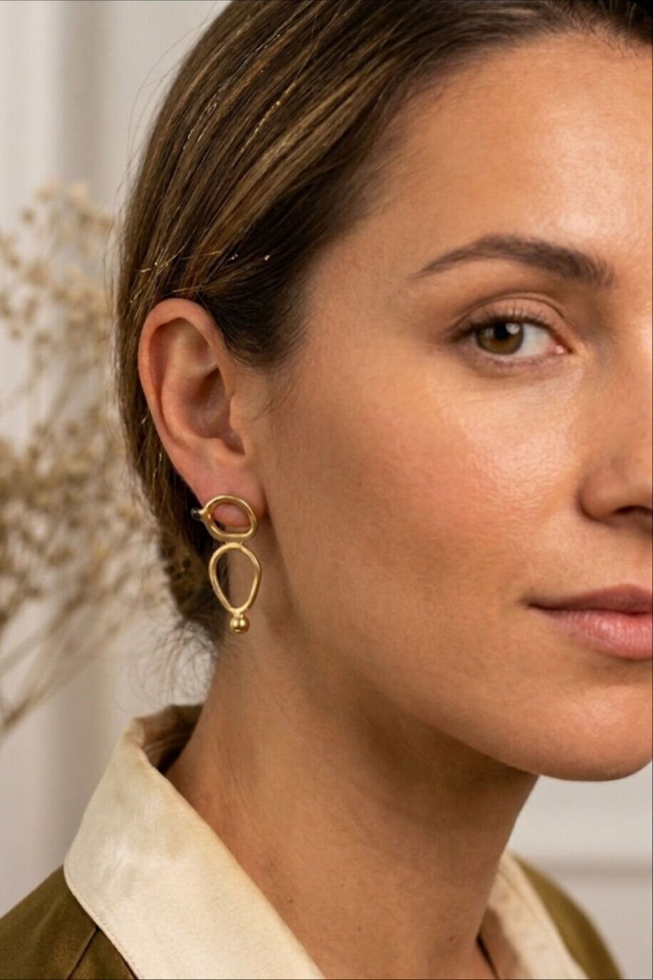 L'ea Gümüş Tasarım’ın özgün işçiliğiyle hayat bulan bu altın kaplama iki damla küpeler, modern minimalizmi doğanın organik formlarıyla birleştiriyor. İster günlük stilinizi tamamlayın, ister özel bir davette şıklığınızı konuşturun; Altın Kaplama İki Damla Küpeler her anınıza zamansız bir estetik katmak için tasarlandı.