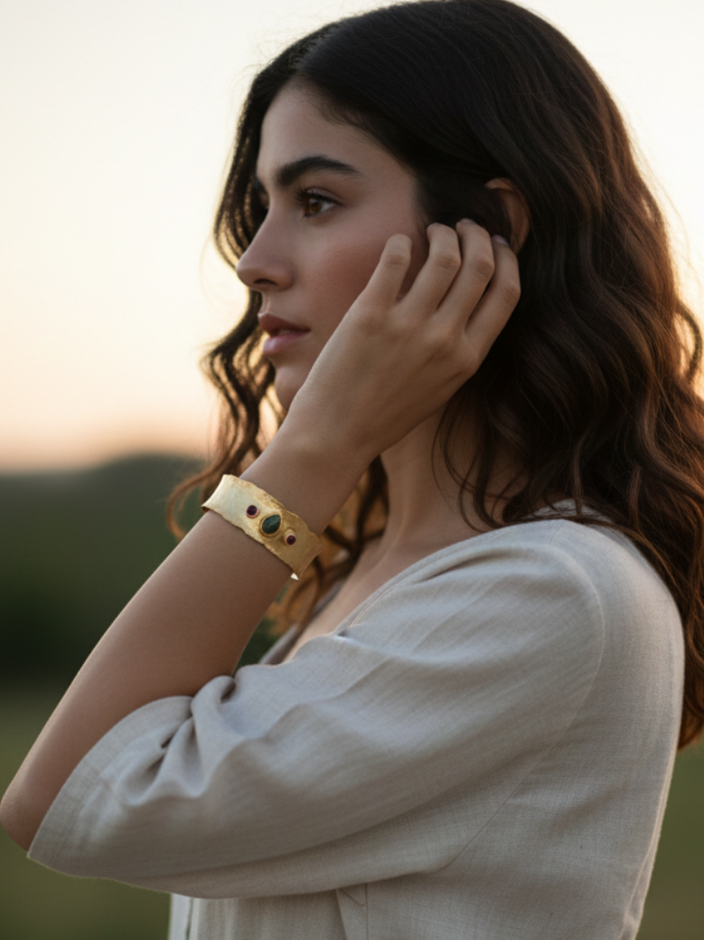 Üç Turmaline Taşlı Bilezik Altın Kaplama