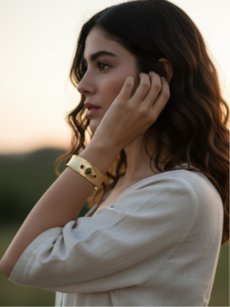 Doğanın renklerini ve el işçiliğinin gücünü bileğinizde hissedin. Bu özel tasarım, zerafet ve ham dokunun kusursuz uyumuyla Modern Royalty koleksiyonumuzun en nadide parçalarından biri olarak tasarlandı.