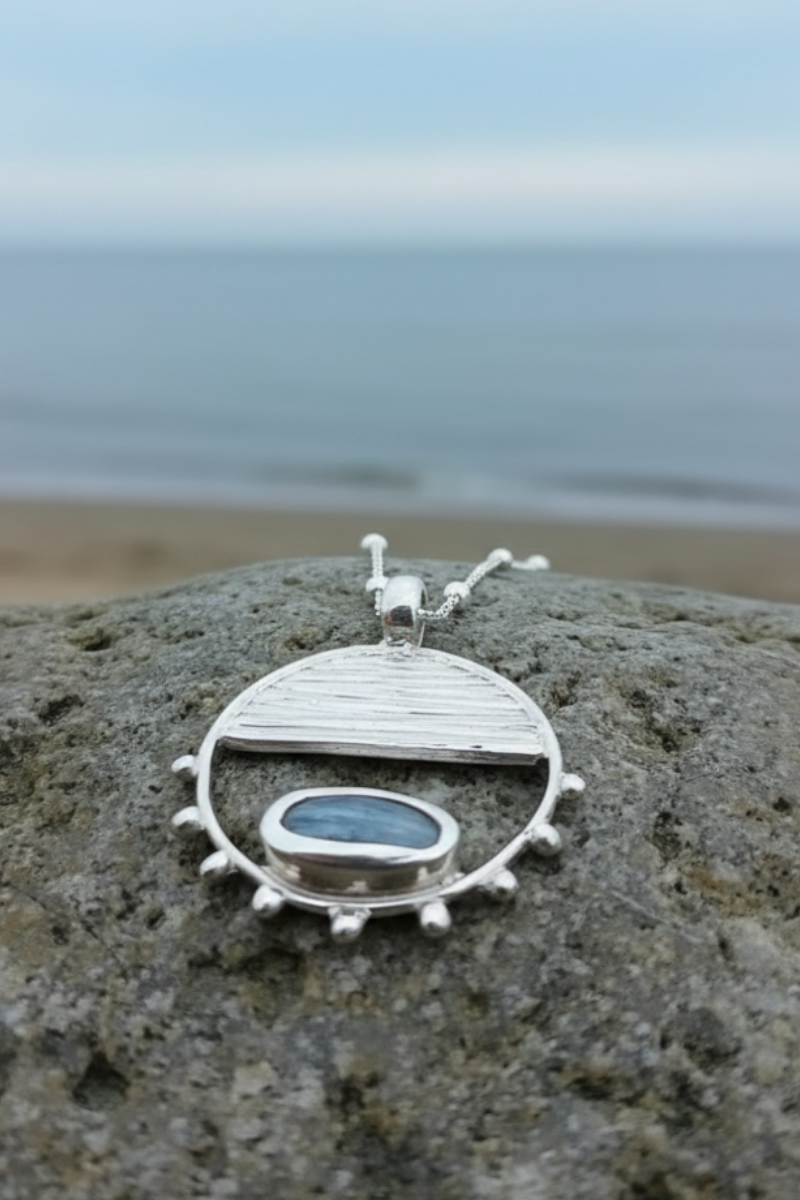 Kyanite Taşlı Gümüş Slice Kolye, sadece bir aksesuar değil; içsel yolculuğunun zarif bir yansıması.