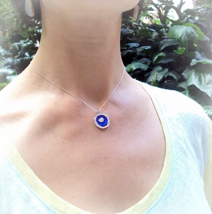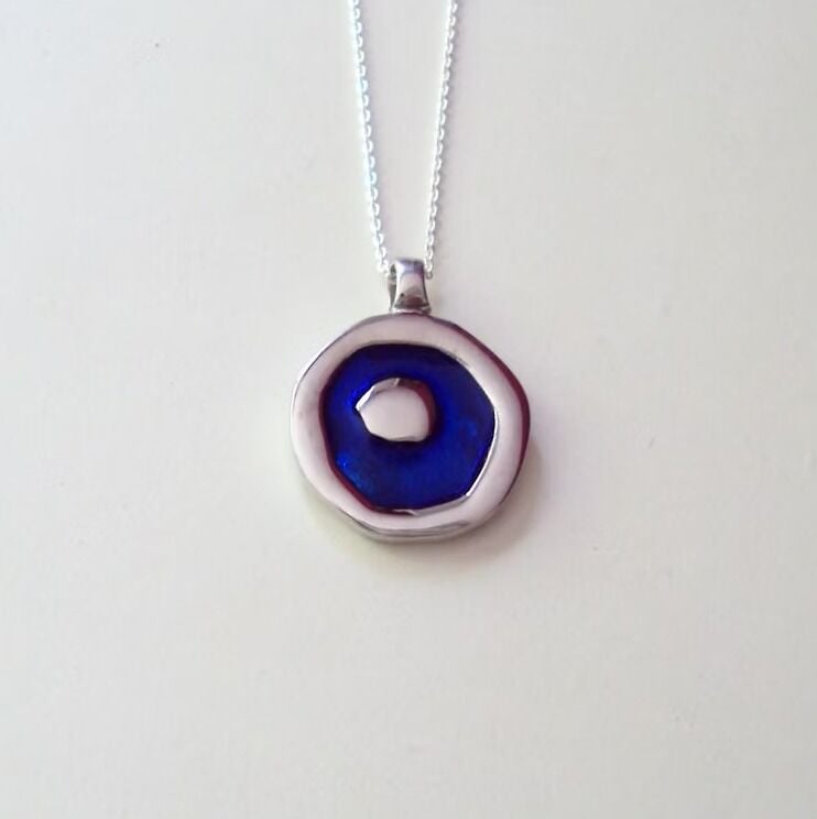 Renklendirme: Üzerindeki canlı mavi tonu, geleneksel mine işçiliği ile verilmiş olup kolye modeline derinlik katar.