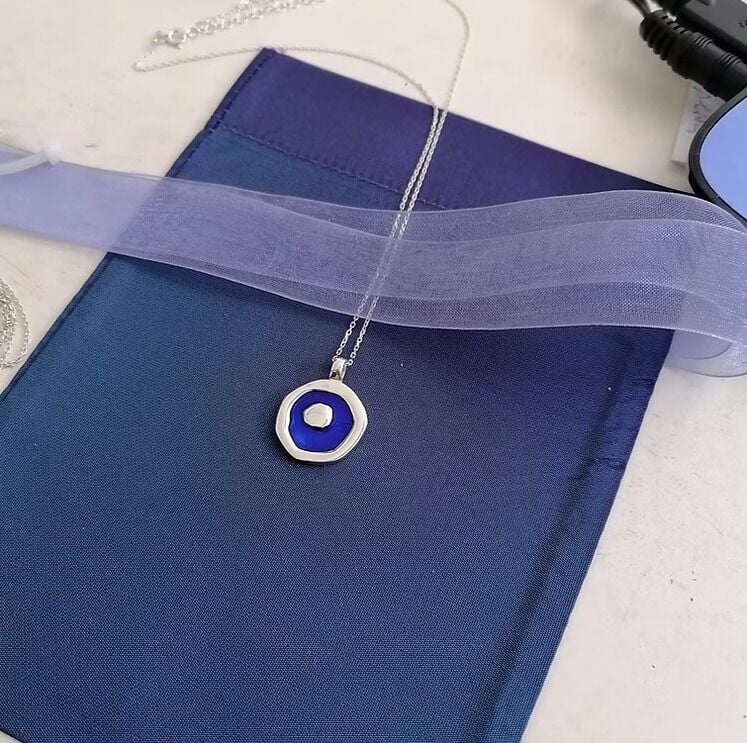 Mineli Nazar Gümüş Kolye ışıltısının ve mine renginin korunması için parfüm, deodorant ve saç spreyi gibi kimyasallarla temasından kaçınılmalıdır.