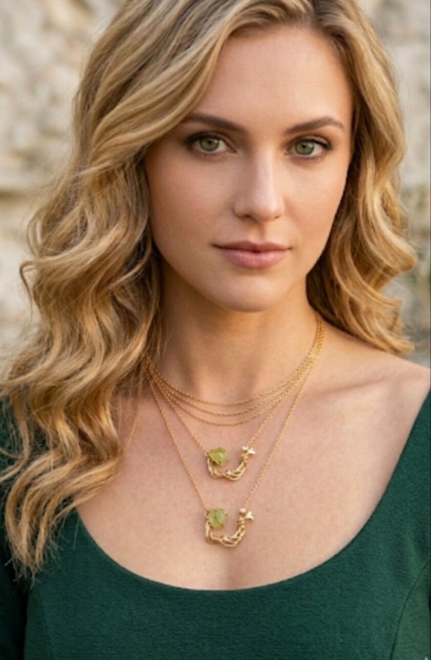 Doğanın taze yeşili, bu özel Peridot Taşlı Sevgi Kolye tasarımında gümüşün sadeliğiyle buluştu. Mimoza koleksiyonumuzun bir parçası olan bu kolye, tamamen el yapımıdır.