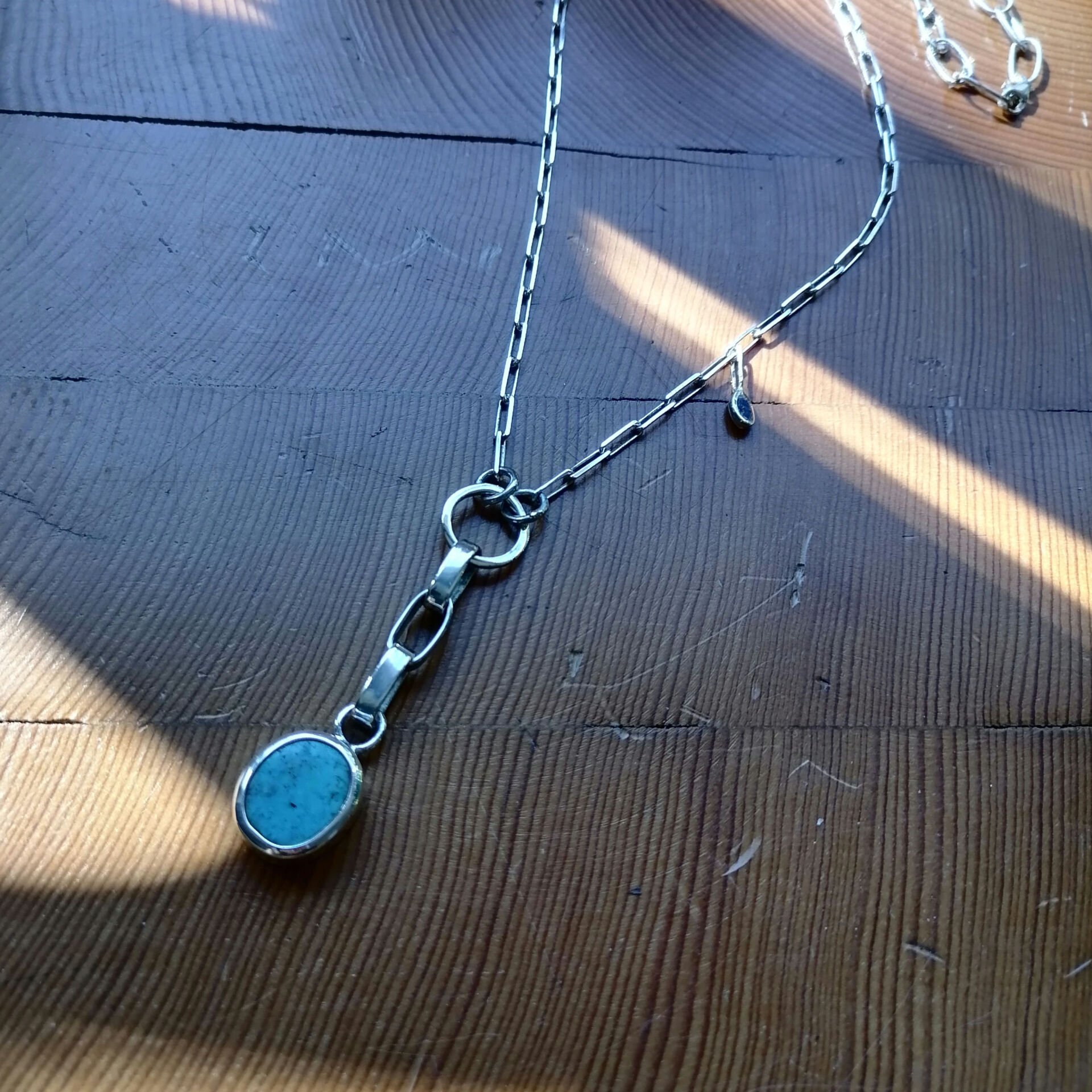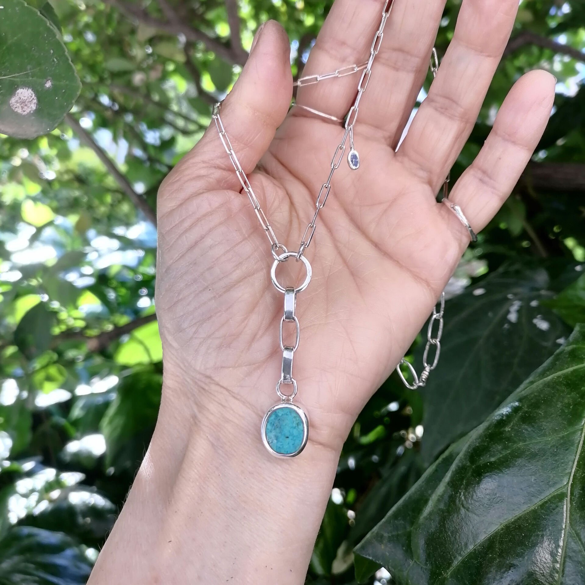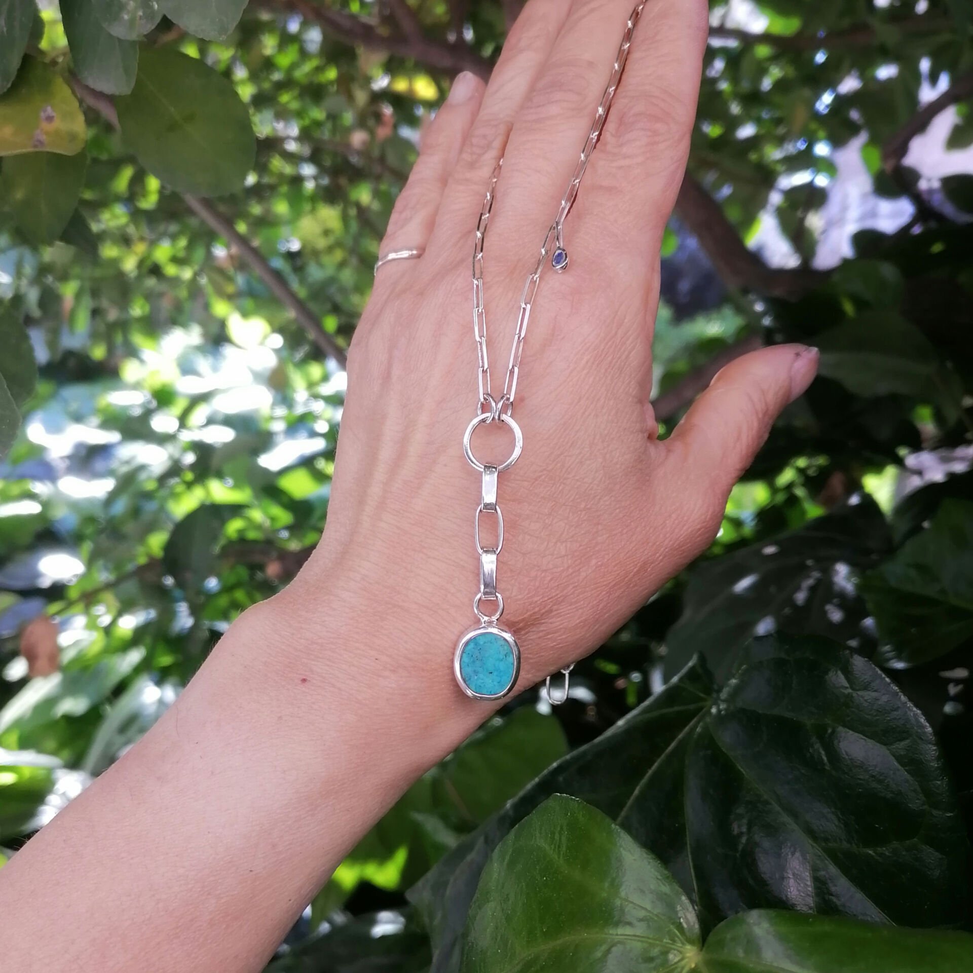 Turkuaz Taşlı Gümüş Halkalı Kolye