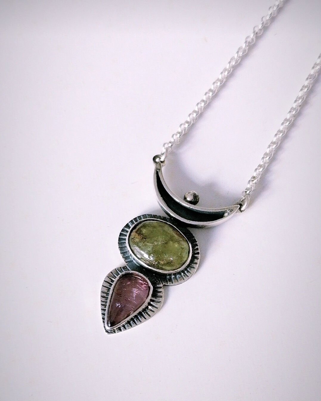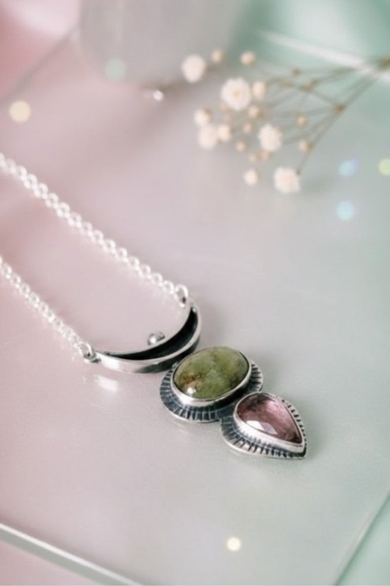 Turmaline ve Vasonite Taşlı Gümüş Kybele Kolye