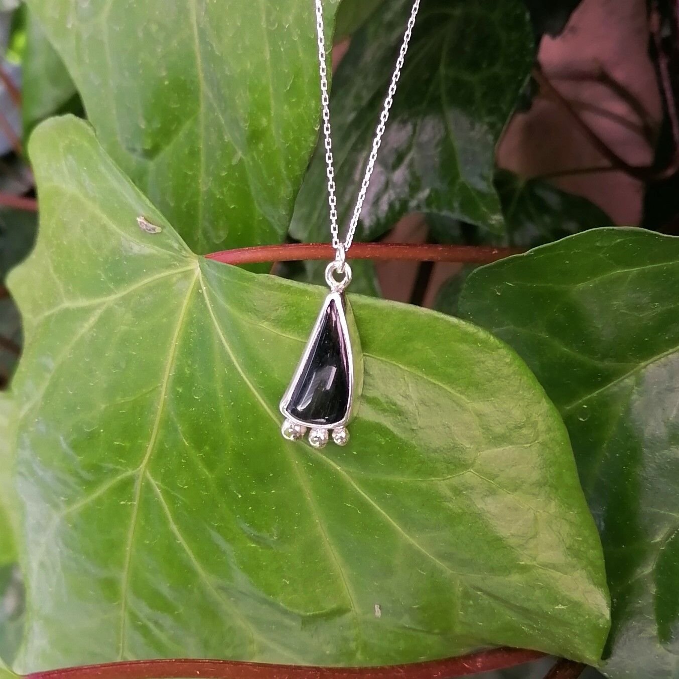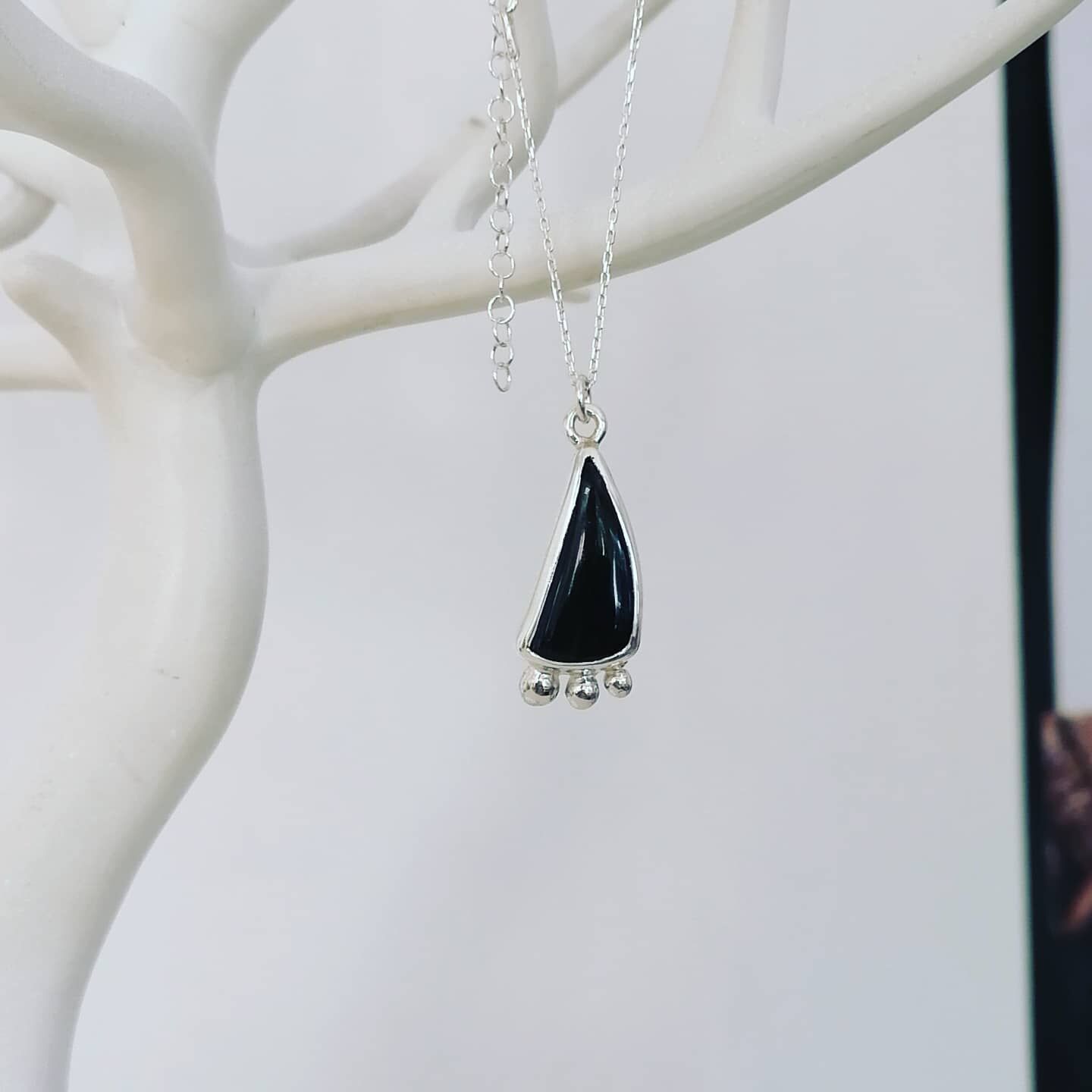 Üç Benek Obsidyen Taşlı Gümüş Kolye